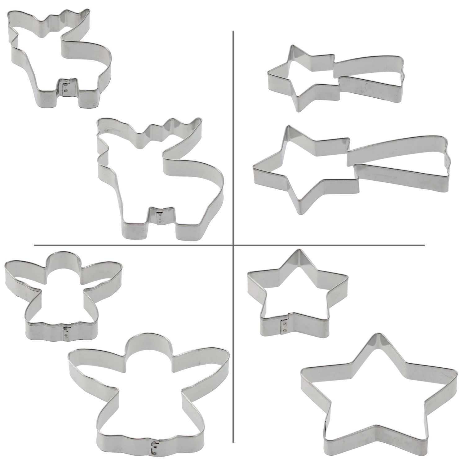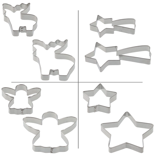 Készítsen lenyűgöző karácsonyi aprósüteményeket ezzel a két darabos, angyal alakú kiszúrókészlettel. Tartalmaz nagy és kicsi kiszúrót, hogy alkotásai egységes megjelenésűek legyenek. A minőségi acél hosszú élettartamot biztosít, az éles élek pedig precíz kiszúrást tesznek lehetővé még kezdők számára is. Könnyű karbantartás és többszöri felhasználás magától értetődő.