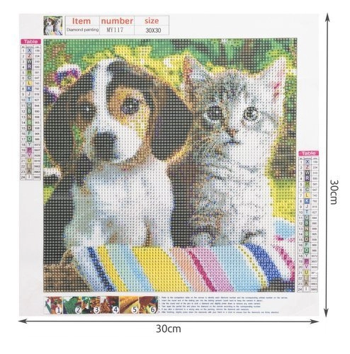 - Specifikációk: Minta: kutya és macska; ragasztóval bevont vászon: igen; méret: 30x30 cm; képméret: 25x25 cm; súly: 0,1 kg; csomagolás súlya: 0,103 kg.