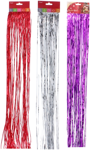 Elegáns lametta angyalszőr formában, 100 cm hosszban, amely csillogást, fényt és varázslatos hangulatot kölcsönöz ünnepi dekorációinak. A vékony metálcsíkok ideálisak karácsonyfa, ablakok, ajtók és egyéb beltéri elemek díszítésére. Tartós műanyag anyag és ezüst, arany, piros színváltozatok, hogy könnyen illeszkedjenek a stílusához.