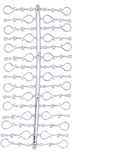 Könnyítse meg a karácsonyfa díszítését a 30 darab metál ezüst akasztót tartalmazó készlettel. Átgondolt formájuk révén a díszek pillanatok alatt felakaszthatók, miközben az akasztók stabilan tartanak és kíméletesek az ágakhoz. A könnyű műanyag anyag nem terheli a fát, az ezüst felület pedig elegáns csillogást ad a dekorációknak.