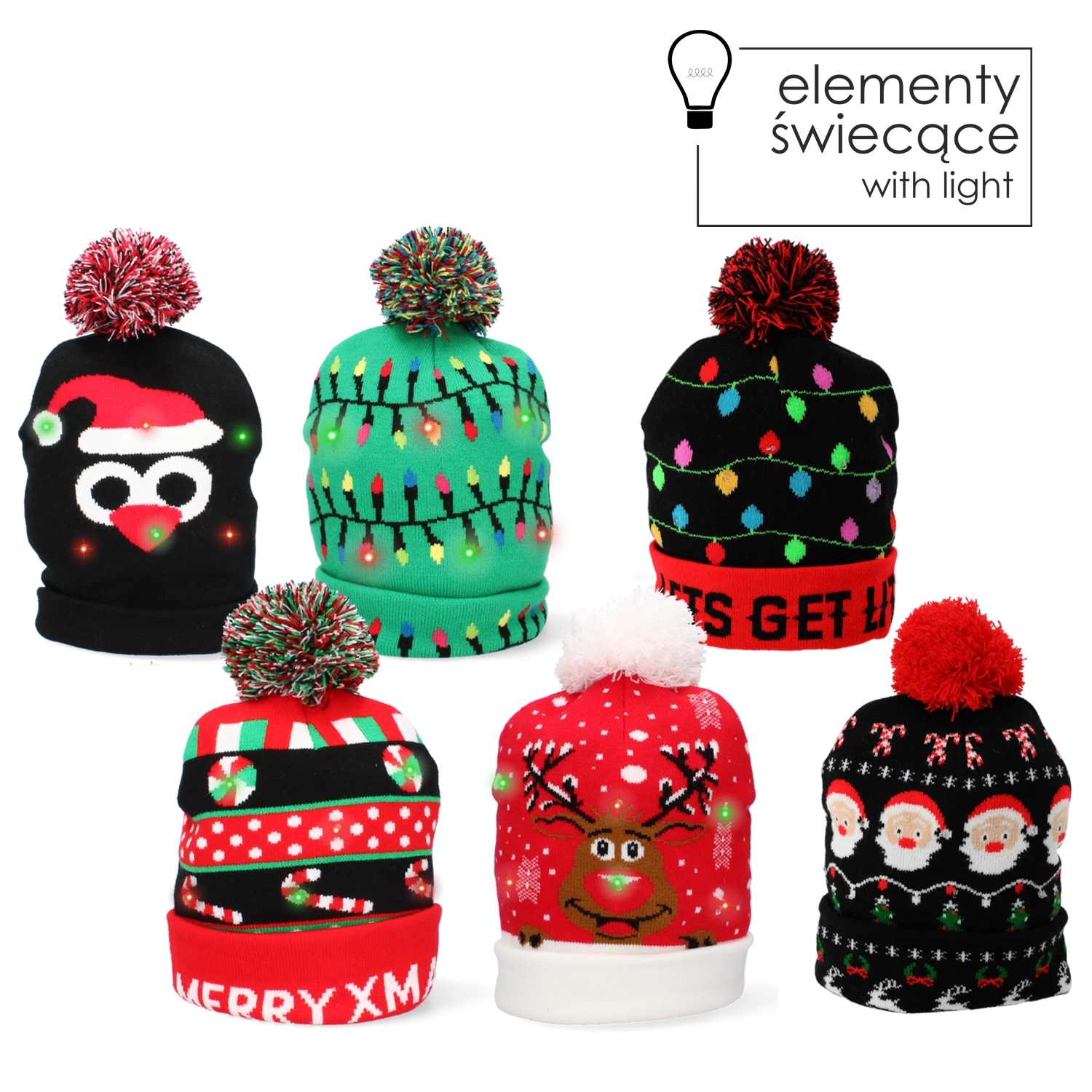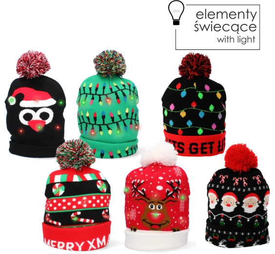 Egyedi kiegészítőt keresel céges bulira, családi fotózáshoz vagy karácsonyi vásárra? A készlet mintáinak változatossága mindenkinek örömet szerez – a MERRY XMAS feliratú sapkáktól kezdve a rénszarvas, a Mikulás és a fényfüzér motívumokon át egészen a LED háttérvilágítással ellátott darabokig, amelyek valódi „wow” hatást keltenek. Minden sapka puha kötött anyagból készült, meleg és kellemes viselet.