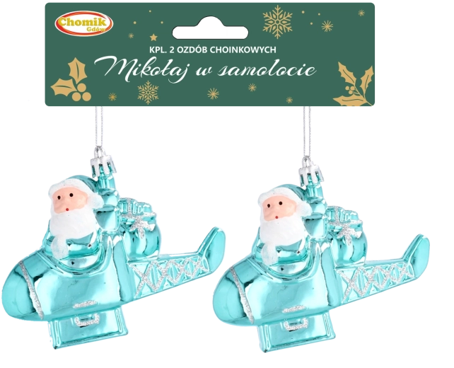 Fedezze fel a játékos és stílusos kiegészítőket, amelyek azonnal életre keltik karácsonyi dekorációját. A készlet 2 függődíszt tartalmaz, Mikulással, aki repülőt vezet – vidám motívum, amely a gyerekeknek és felnőtteknek egyaránt örömet szerez. A minőségi műanyagnak köszönhetően a díszek könnyűek, tartósak, és nagyobb fákhoz is alkalmasak.