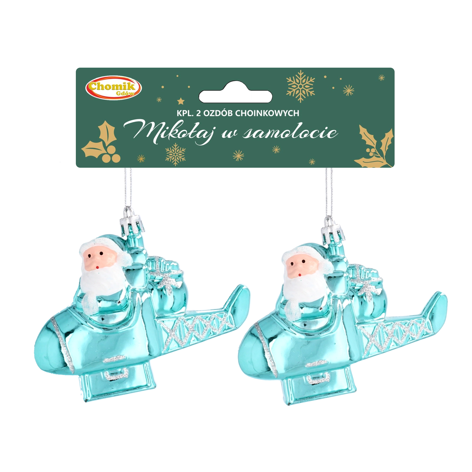Karácsonyi függő díszek – Mikulás repülőgépen, 2 db-os készlet