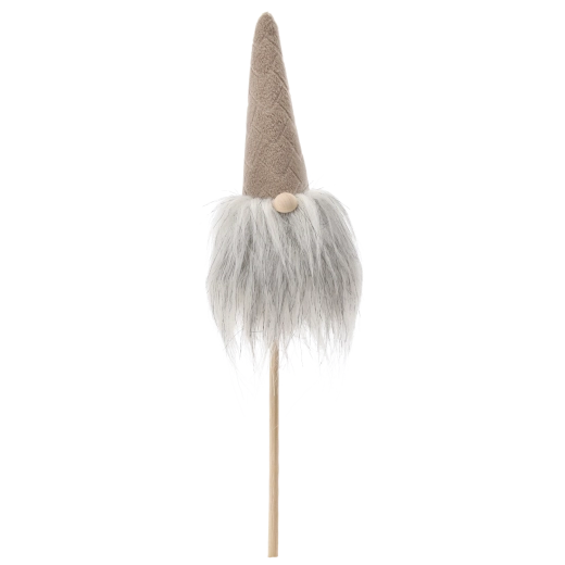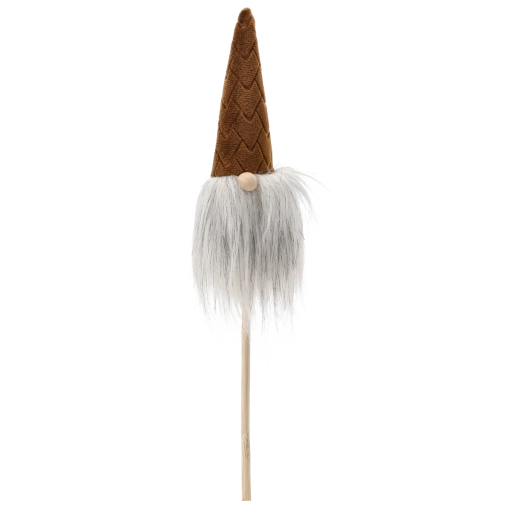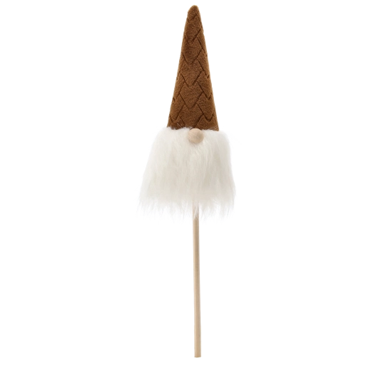 Ez a karácsonyi manó remek választás gyors és látványos dekorációhoz. A fa pálcás, könnyű kialakítás lehetővé teszi a könnyű beszúrást a kaspó földjébe, koszorúba vagy kompozíciókba, míg a puha textíliák és a pelyhes szakáll barátságos, rusztikus megjelenést kölcsönöznek a dísznek.