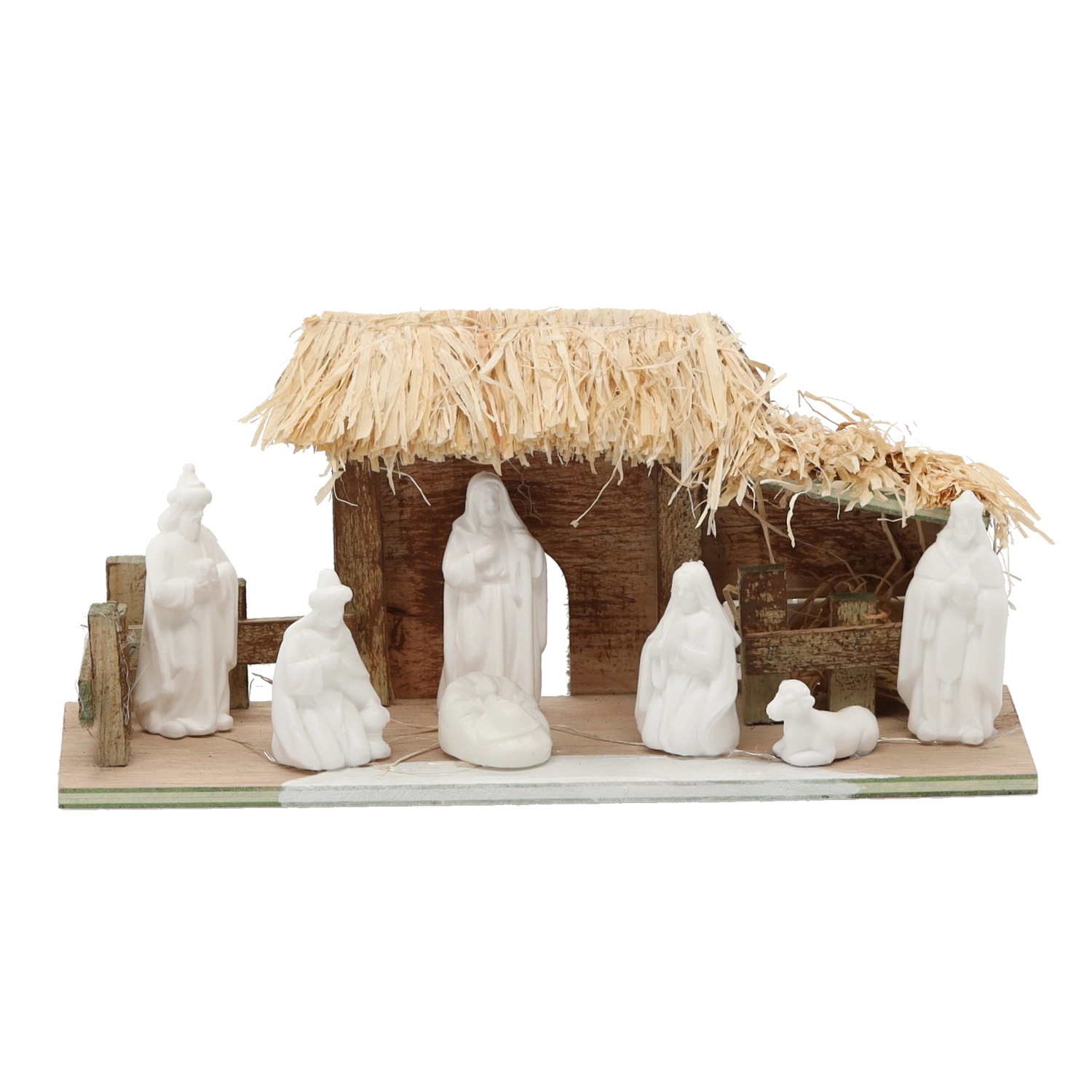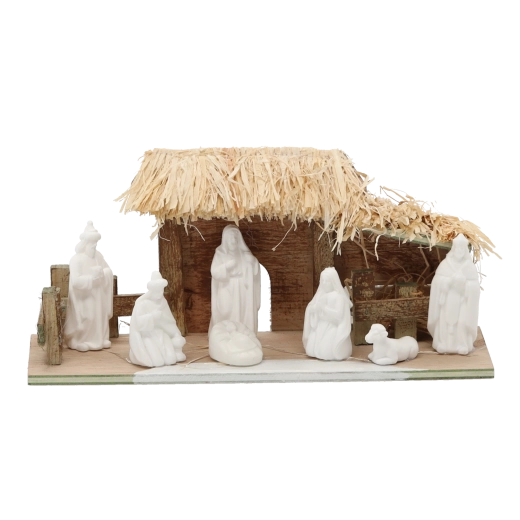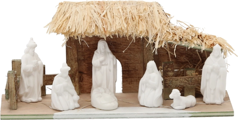 Ez az elegáns betlehem fából és szalmából készült, így természetes és meghitt hatást kelt. A gondosan kidolgozott részletek kiemelik a hagyományos megjelenést, és remekül illenek a boho, rusztikus vagy klasszikus stílushoz.