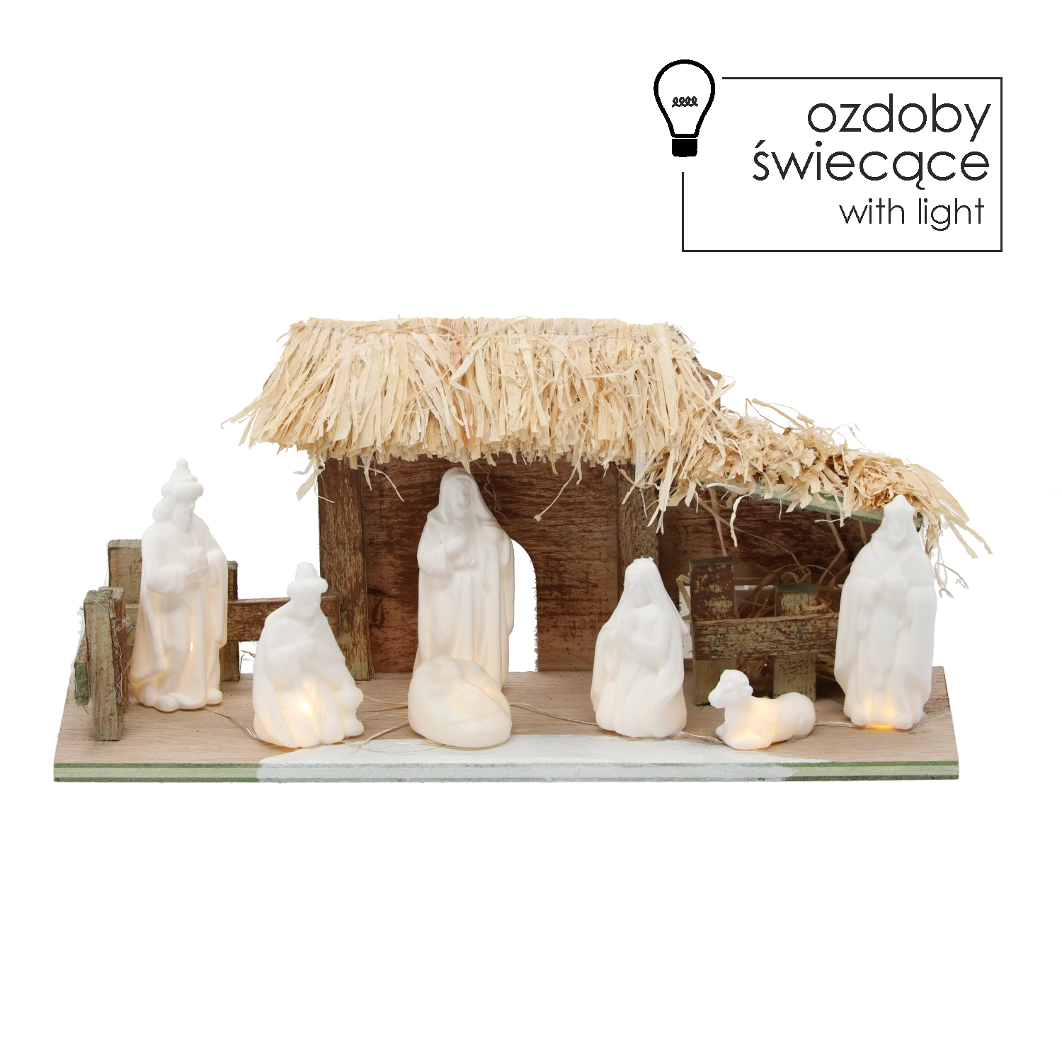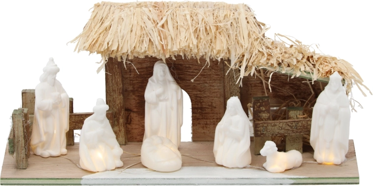 Teremtsen otthon igazi ünnepi hangulatot ezzel a természetes hatású karácsonyi betlehemmel LED világítással. Ötvözi a fa és szalma hagyományos megjelenését a meleg, energiatakarékos LED fénnyel, amely varázst és meghittséget kölcsönöz a belső térnek. A univerzális, 31 × 10,5 × 13,5 cm-es méreteknek köszönhetően tökéletesen illik komódra, párkányra, asztalra vagy a karácsonyfa alá.