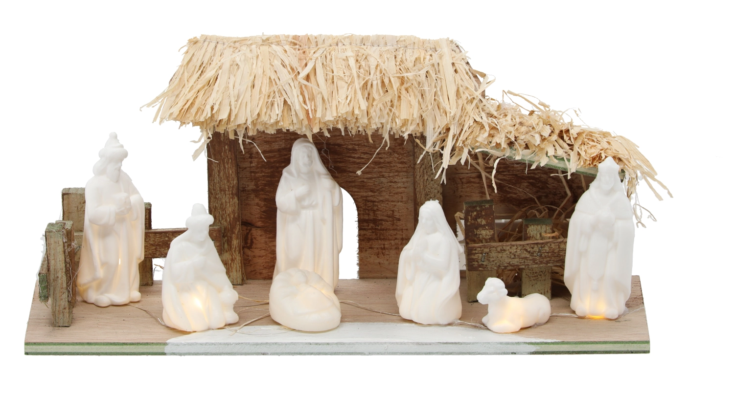 A meleg LED világítás nyugodt, ünnepi hangulatot teremt, és kiemeli a jelenet szépségét. A betlehem kiváló karácsonyi dekoráció a nappaliba, étkezőbe, irodába vagy közösségi terekbe, és remek karácsonyi ajándék is lehet.