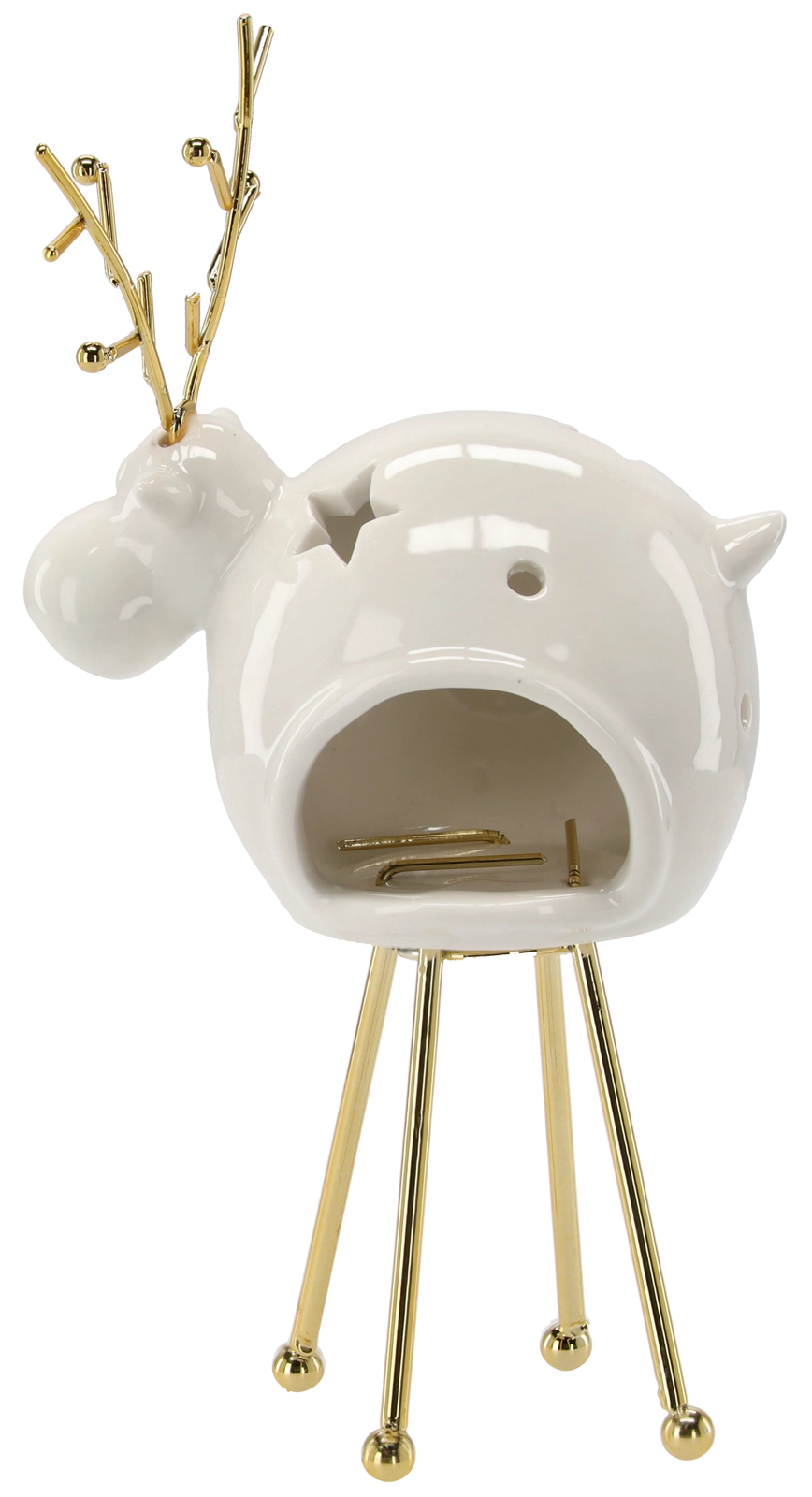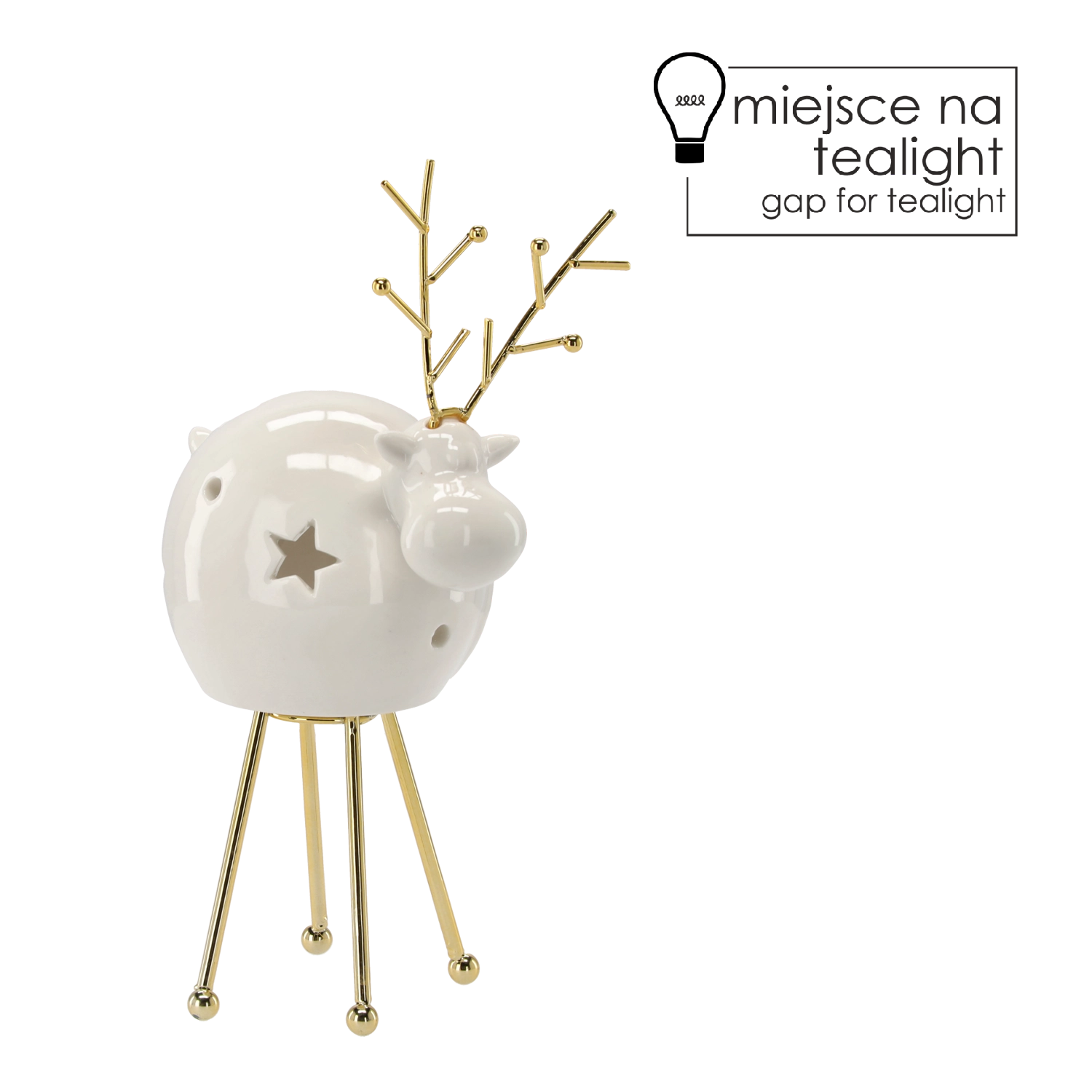 A stílusos, rénszarvas alakú gyertyatartó a hagyományos karácsonyi motívumot ötvözi a praktikus használattal. A minőségi fém kivitel arany felületkezeléssel modern és egyben ünnepélyes megjelenést ad a dekorációnak, amely könnyedén illeszkedik szezonális stílusához.