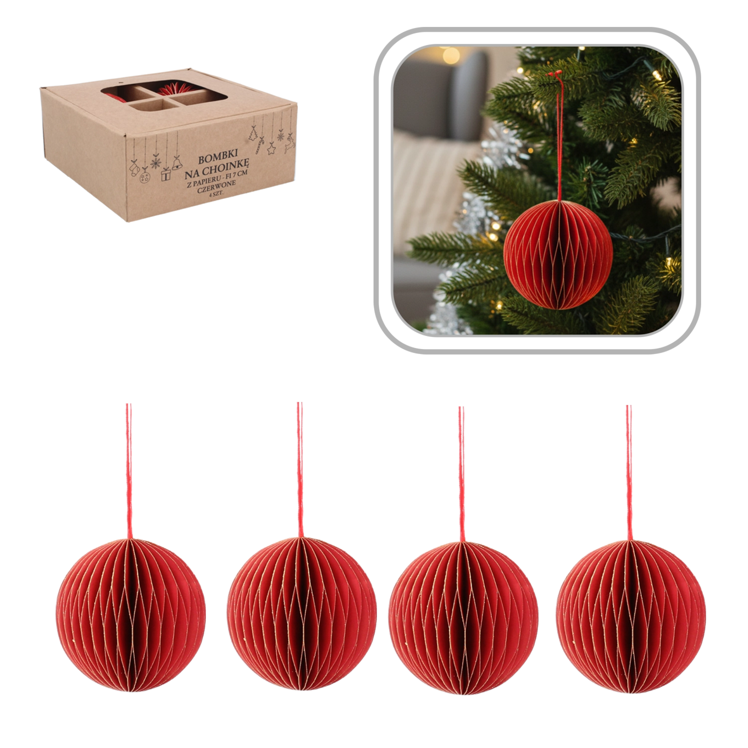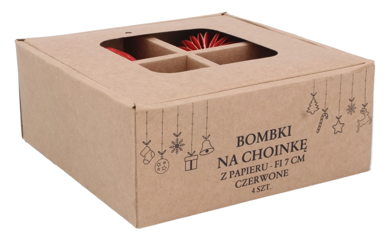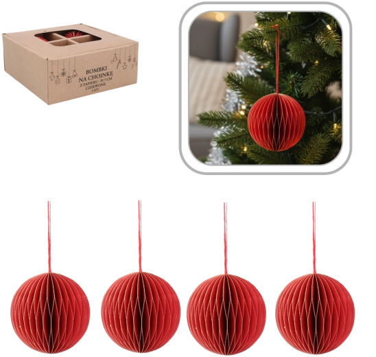 Adj elegáns, ünnepi hangulatot a fádnak a négy darab, 7 cm átmérőjű piros papír díszből álló készlettel. A könnyű anyag biztosítja az egyszerű felakasztást anélkül, hogy terhelné az ágakat, míg a klasszikus piros szín és az időtlen, minimalista design szépen illeszkedik a hagyományos és a modern dekorációkhoz is.