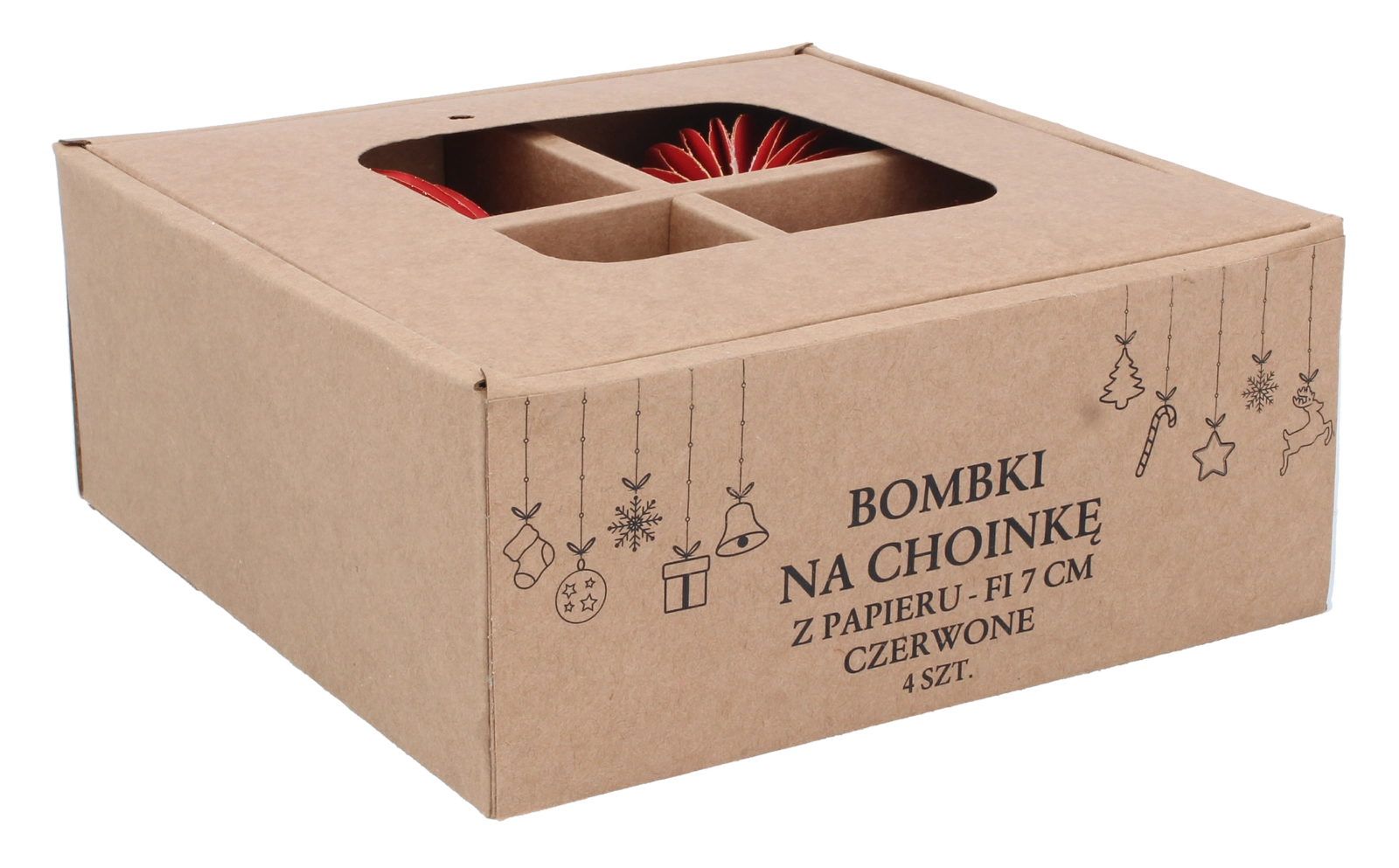 Ez a négy darabos papír karácsonyi díszkészlet ideális azoknak, akik ízléses és könnyű dekorációt keresnek karácsonyfára, koszorúra vagy ünnepi kompozícióhoz. A minőségi kivitel és a telt piros árnyalat meleg, stílusos atmoszférát kölcsönöz a belső térnek.