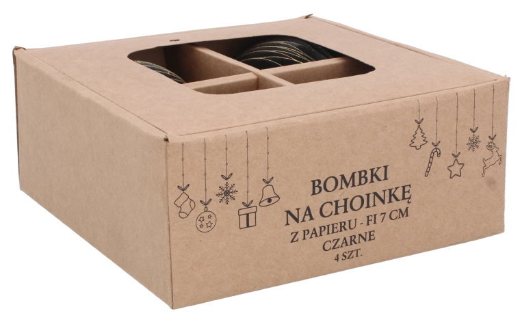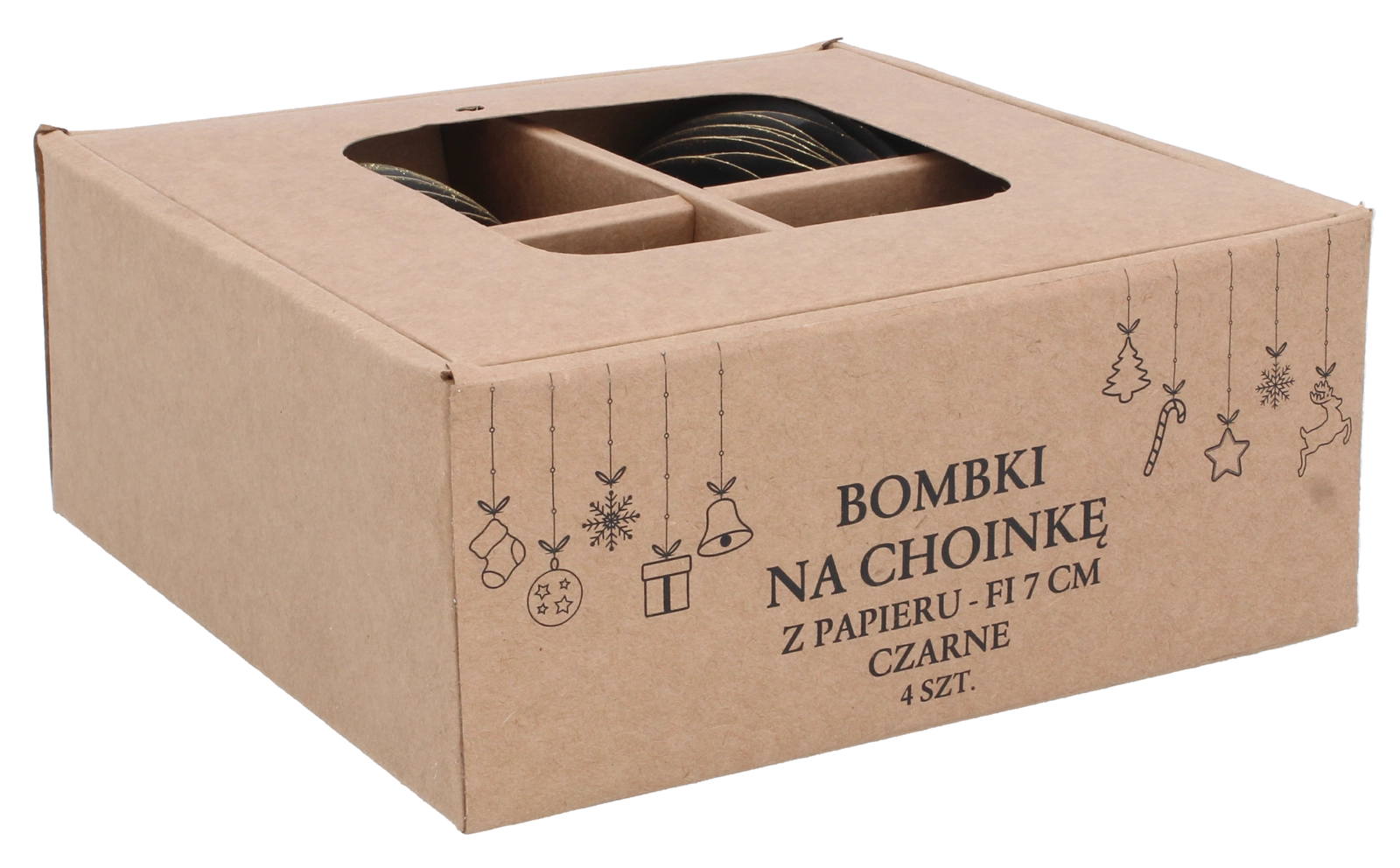 7 cm-es fekete papír karácsonyi gömbök szettje (4 db) Chomik