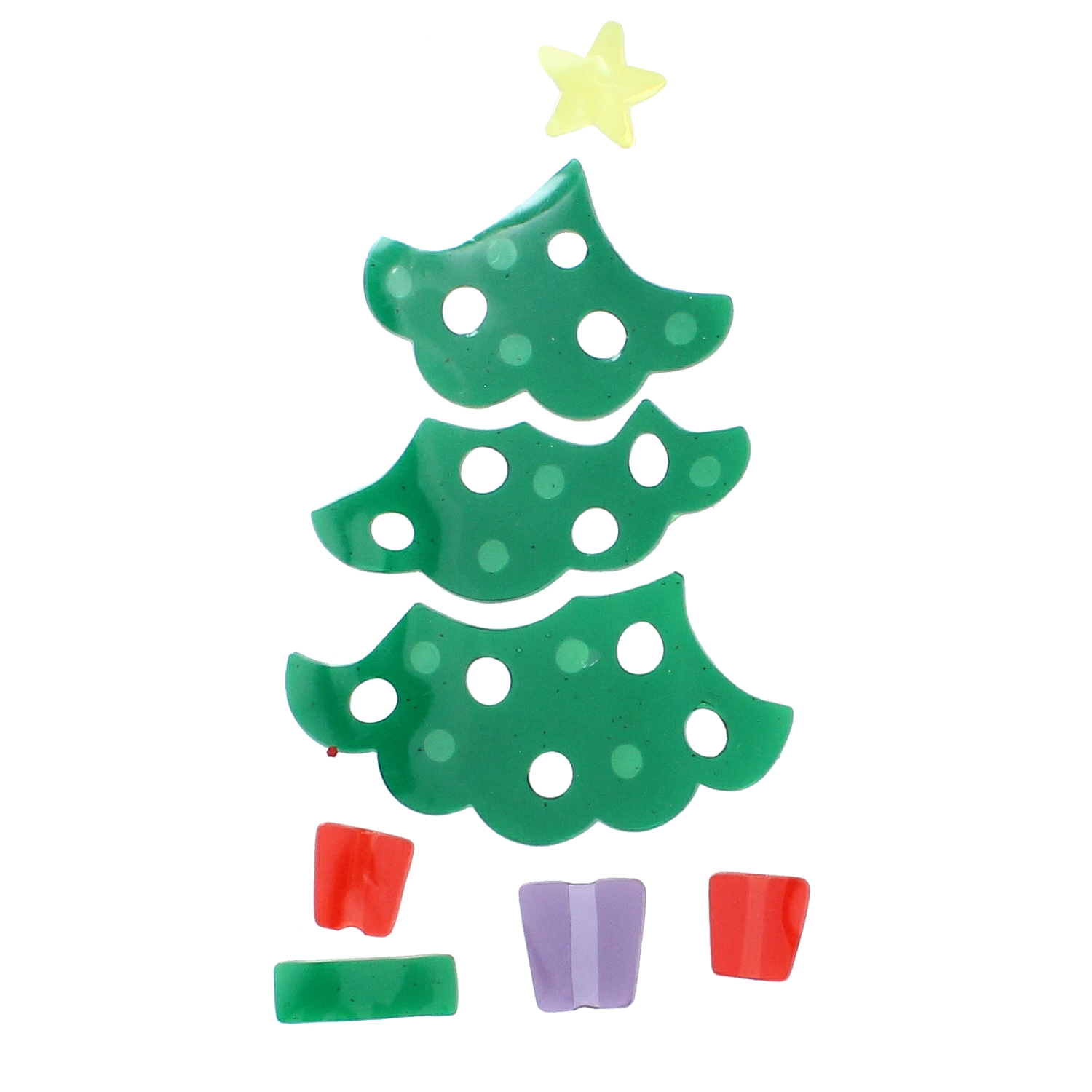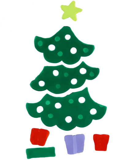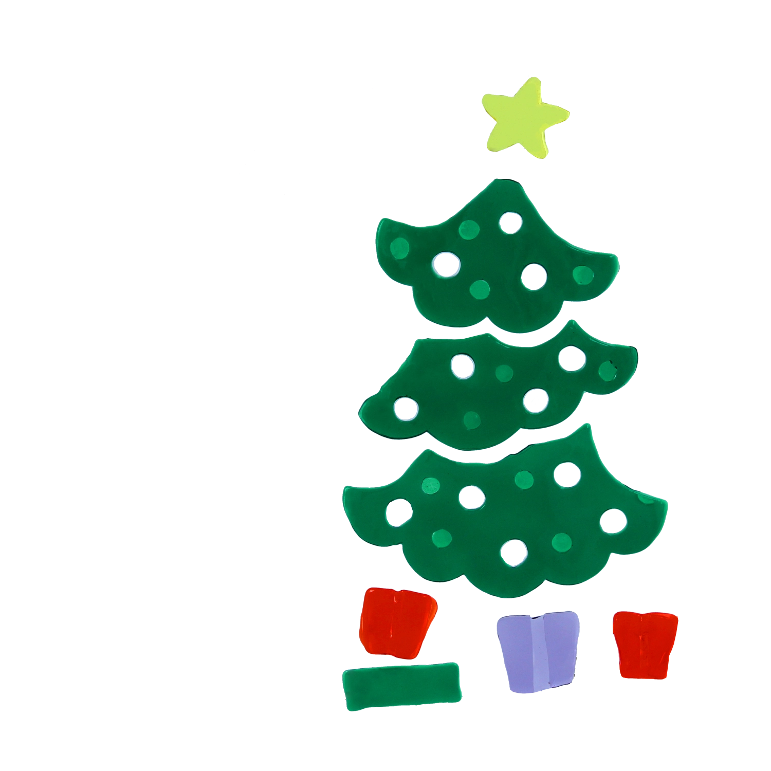 Az egyes elemekből könnyedén összeállíthat egy fenyőfát sárga csillaggal és ajándékokkal az alján. Ideális kreatív dekoráláshoz a gyerekszoba vagy a nappali ablakaiban.