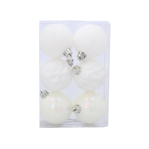 Ez a stílusos fehér gömbszett a minimalista dizájnt magas fokú tartóssággal ötvözi. A műanyag kivitelnek köszönhetően nem kell a töréstől tartani – ideális választás gyermekes vagy kisállatos otthonokba. Könnyű kialakítása biztosítja a könnyű és biztonságos felakasztást bármilyen karácsonyfára.