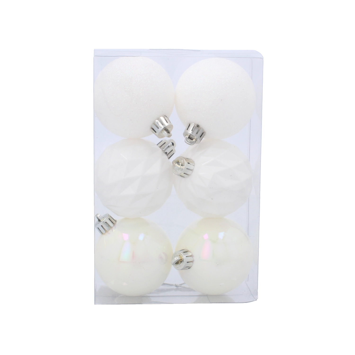 Minden gömb fém akasztófüllel rendelkezik, a szett pedig praktikus dobozban érkezik, ami megkönnyíti az átlátható tárolást az ünnepek után. A matt, gyöngyház és fazettált struktúrák kombinációja harmonikus, luxus megjelenést teremt, amely a hagyományos és a modern dekorációhoz egyaránt illik.