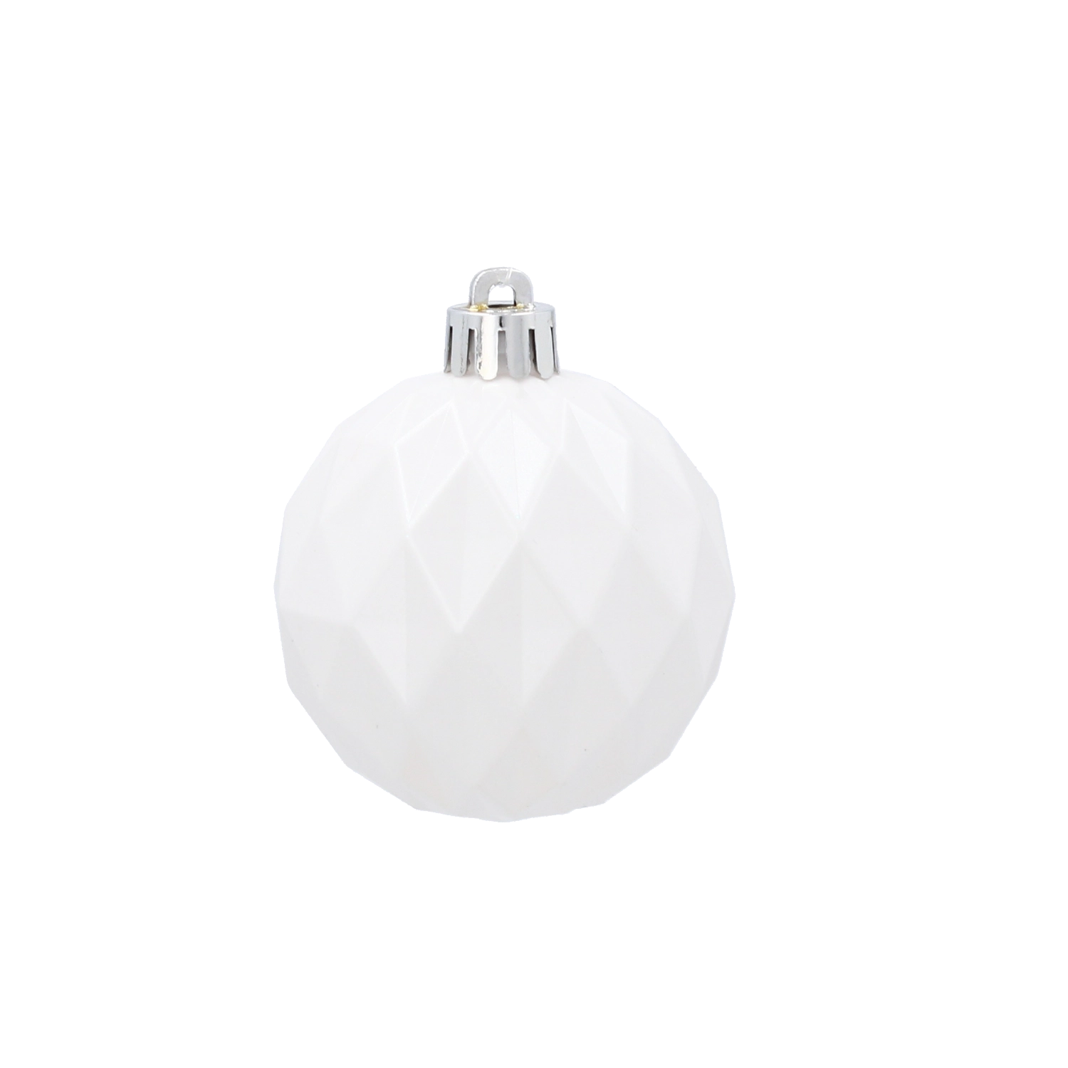 Az irizáló gyöngyház finoman veri vissza a fényt, míg a fazettált minta mélységet és szikrát ad az ünnepi dekorációnak.