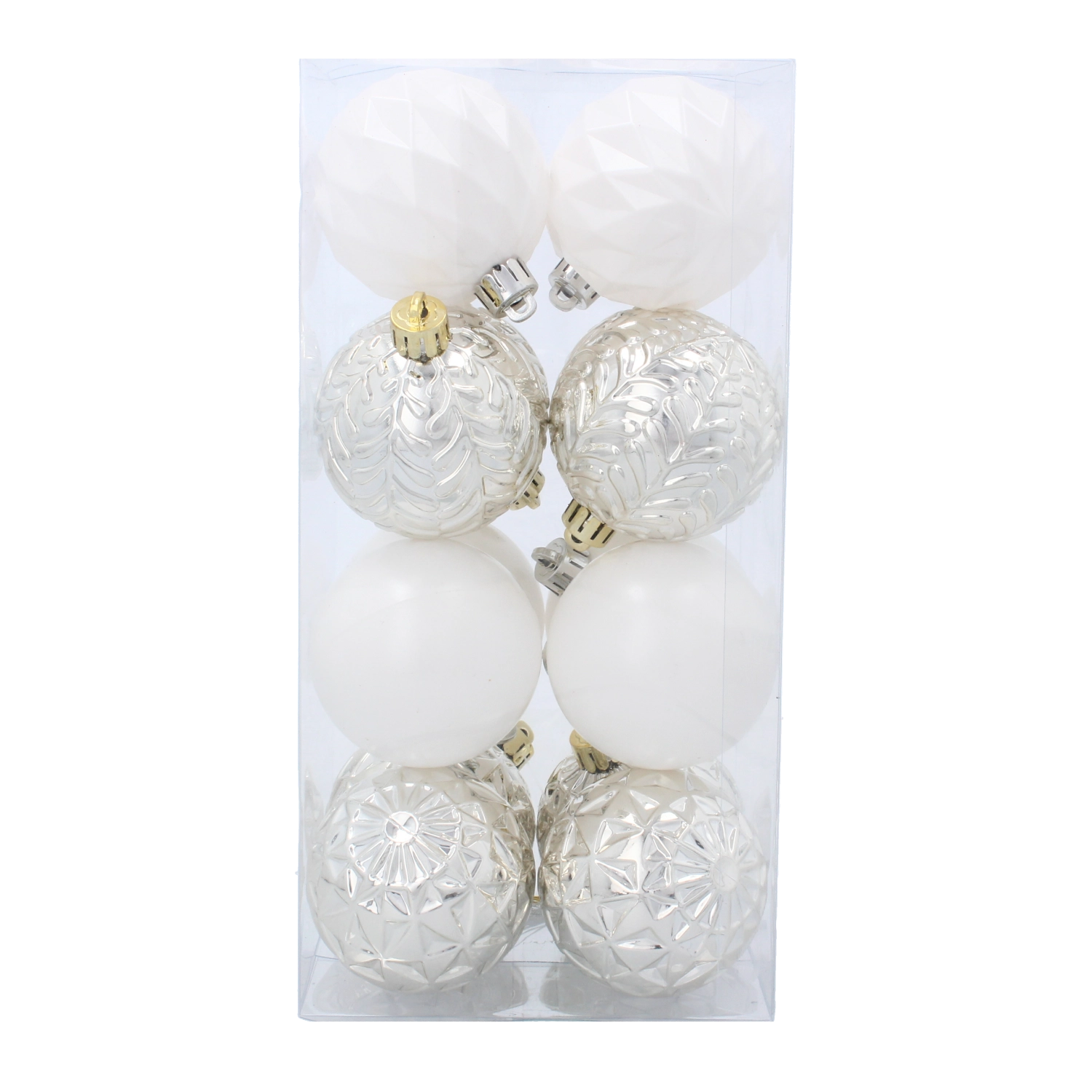 A gömbök mérete ideális kisebb és közepes fákhoz is – a könnyű kialakítás megkönnyíti a felakasztást és csökkenti az ágak terhelését. Az univerzális fehér szín könnyen párosítható fém, fa vagy üveg díszekkel, és harmonikus kompozíciót alkot.