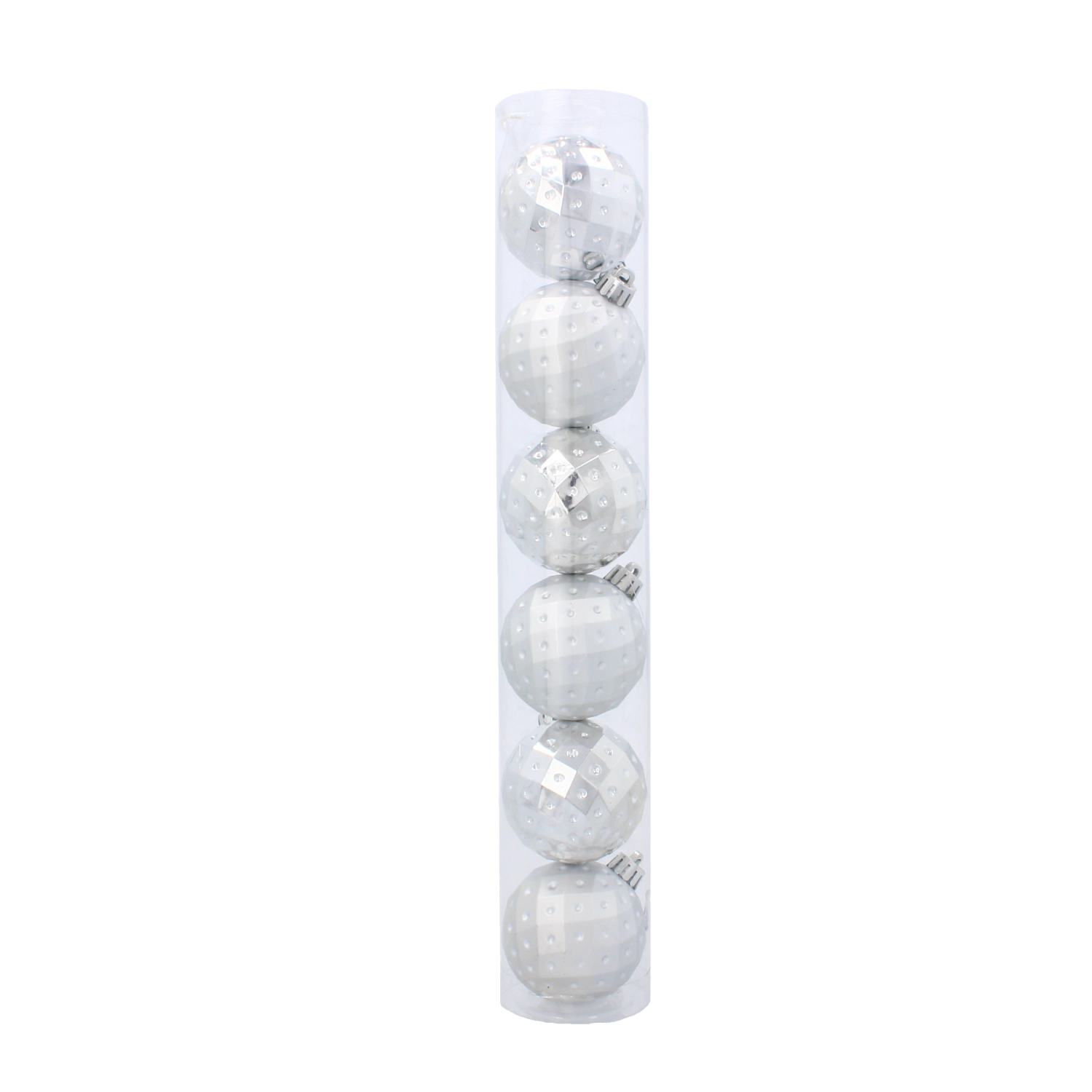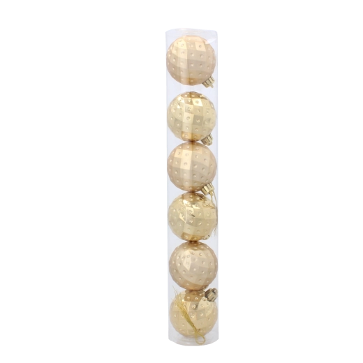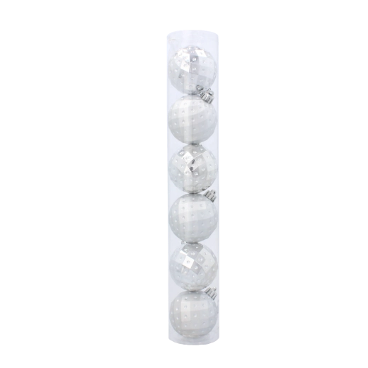 Az átlátszó tubus megóvja a díszeket tárolás közben. A csomag tartalmaz arany- vagy ezüstszínű zsinórokat az azonnali felakasztáshoz.