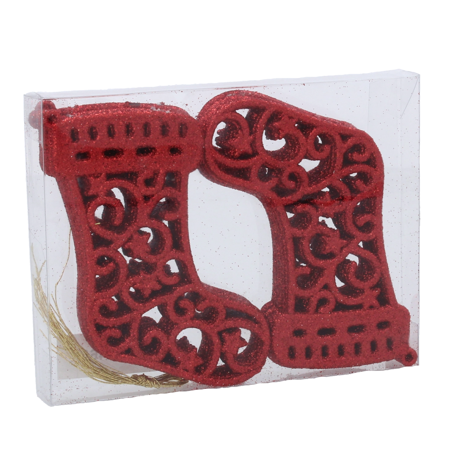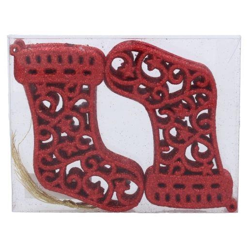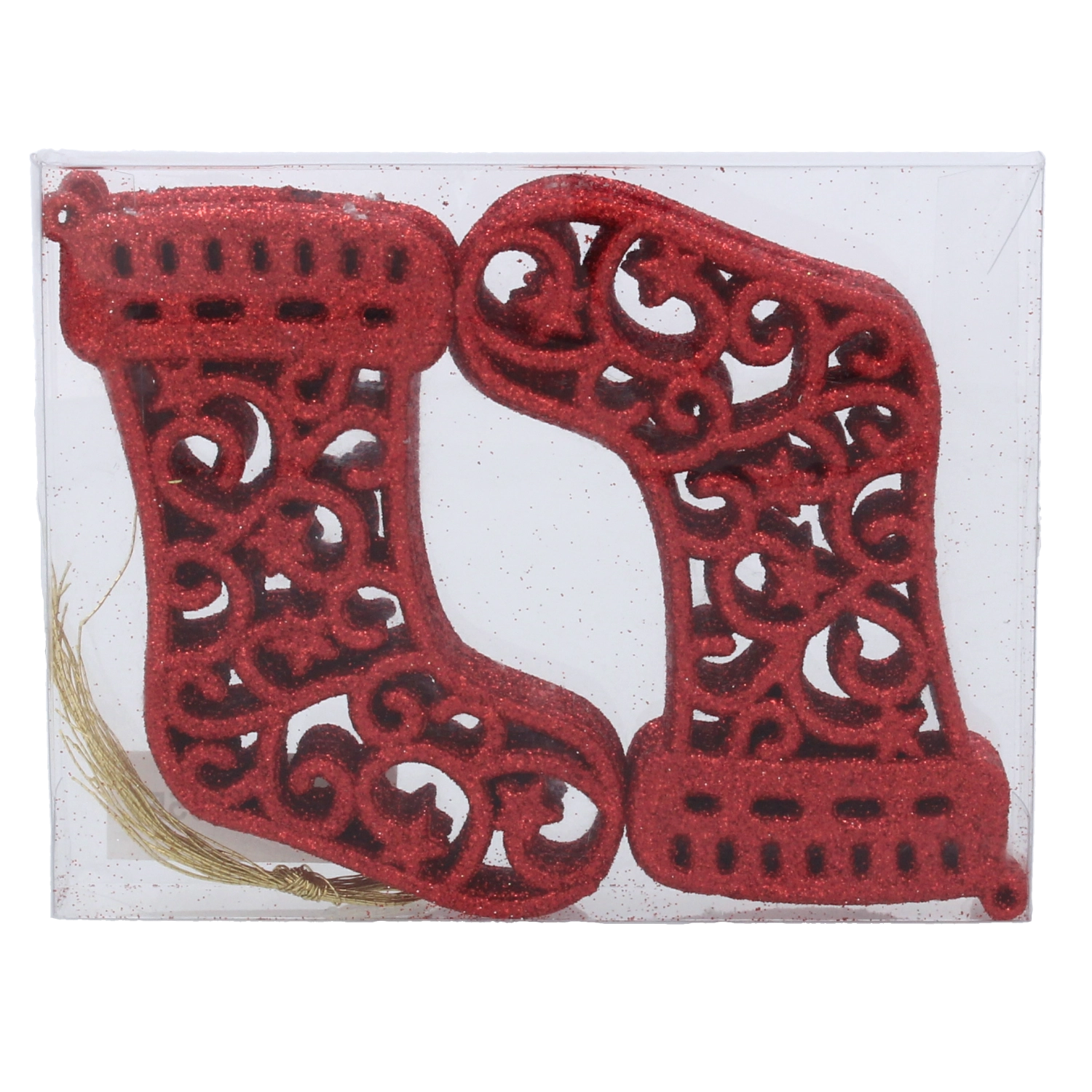 A harisnya alakú díszek szettje időtlen kivitelben hozza el a karácsony varázsát. A díszek könnyűek, törhetetlenek, és csillogó felületük azonnal felragyogtatja a karácsonyfát, a koszorúkat és az ünnepi kompozíciókat. A praktikus zsinórok gyors és biztonságos felakasztást tesznek lehetővé pontosan ott, ahol a legnagyobb hatást szeretné elérni.