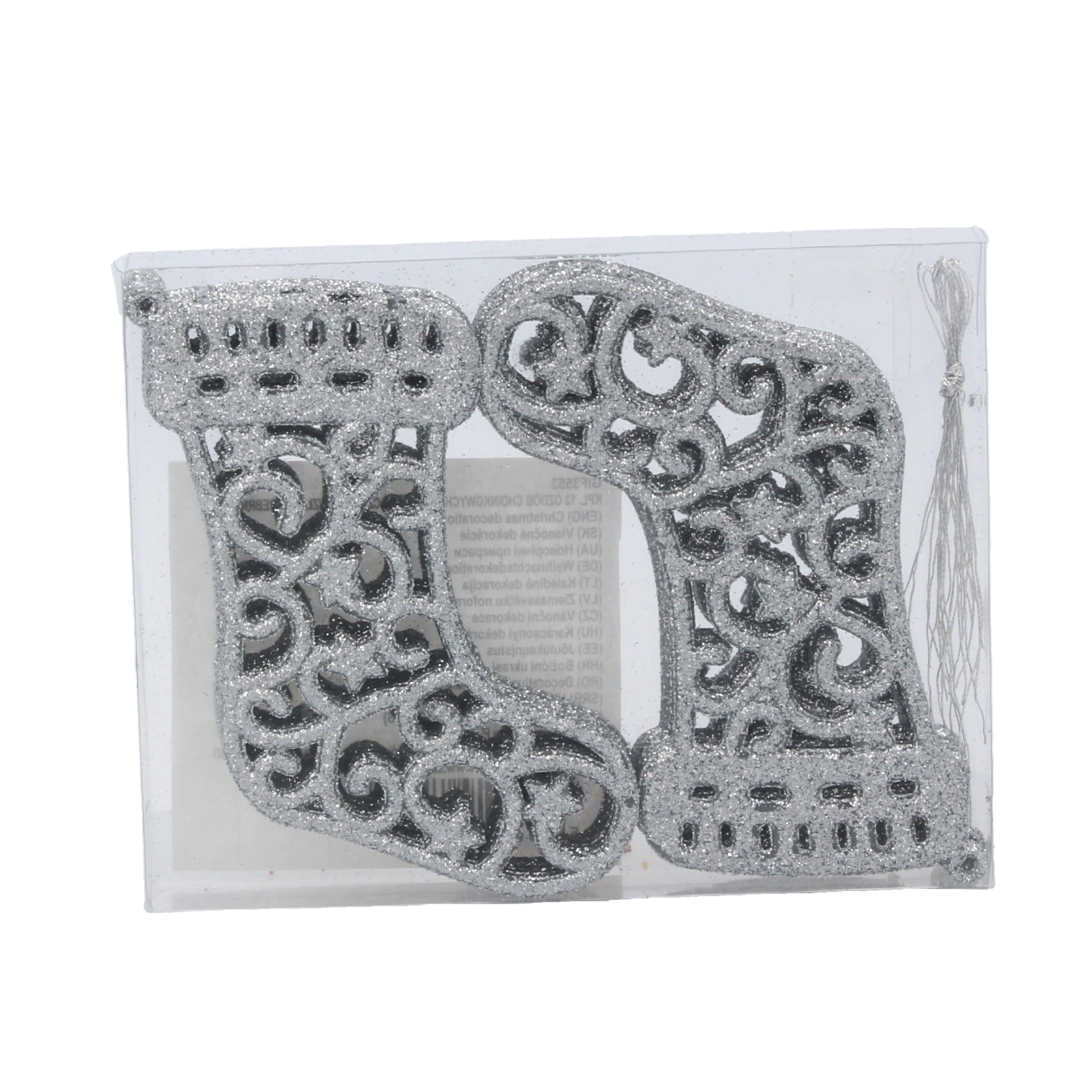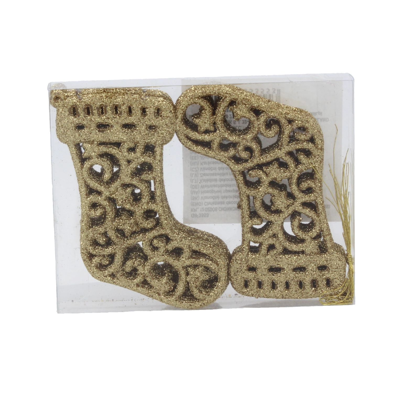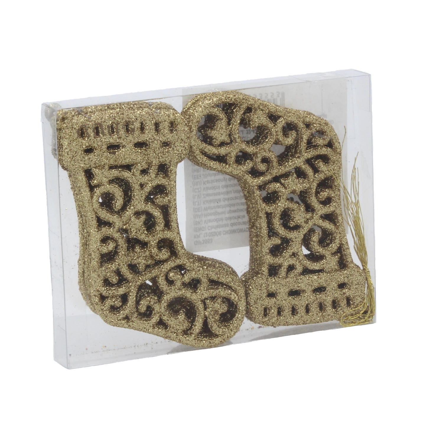 A harisnya alakú díszek szettje időtlen kivitelben hozza el a karácsony varázsát. A díszek könnyűek, törhetetlenek, és csillogó felületük azonnal felragyogtatja a karácsonyfát, a koszorúkat és az ünnepi kompozíciókat. A praktikus zsinórok gyors és biztonságos felakasztást tesznek lehetővé pontosan ott, ahol a legnagyobb hatást szeretné elérni.