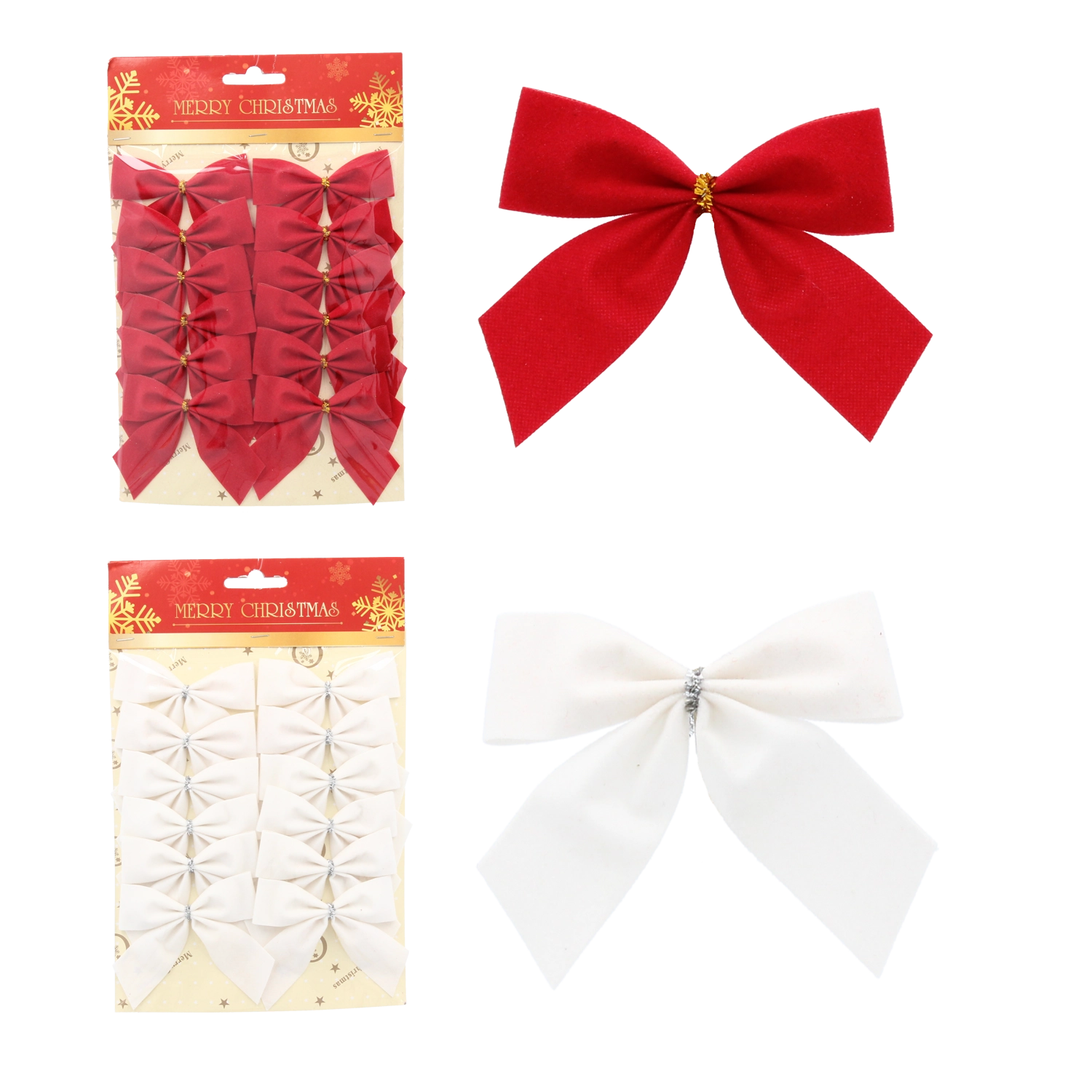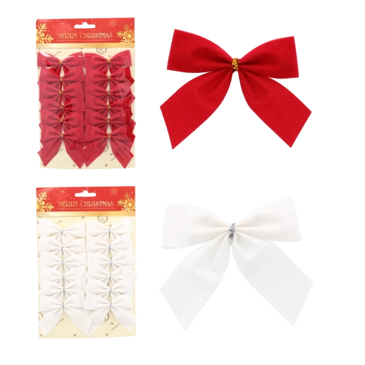 Adjunk stílust ünnepi dekorációinknak ezzel a sokoldalú masni szettel. A klasszikus piros és fehér kombináció tökéletesen illik a különböző díszítési stílusokhoz, a bársonyos textúra pedig elegáns és meleg megjelenést kölcsönöz. A kompakt, 8×6 cm-es méretnek köszönhetően a masnik ideálisak kisebb ágakra, ajándékcsomagokra és adventi díszekre.