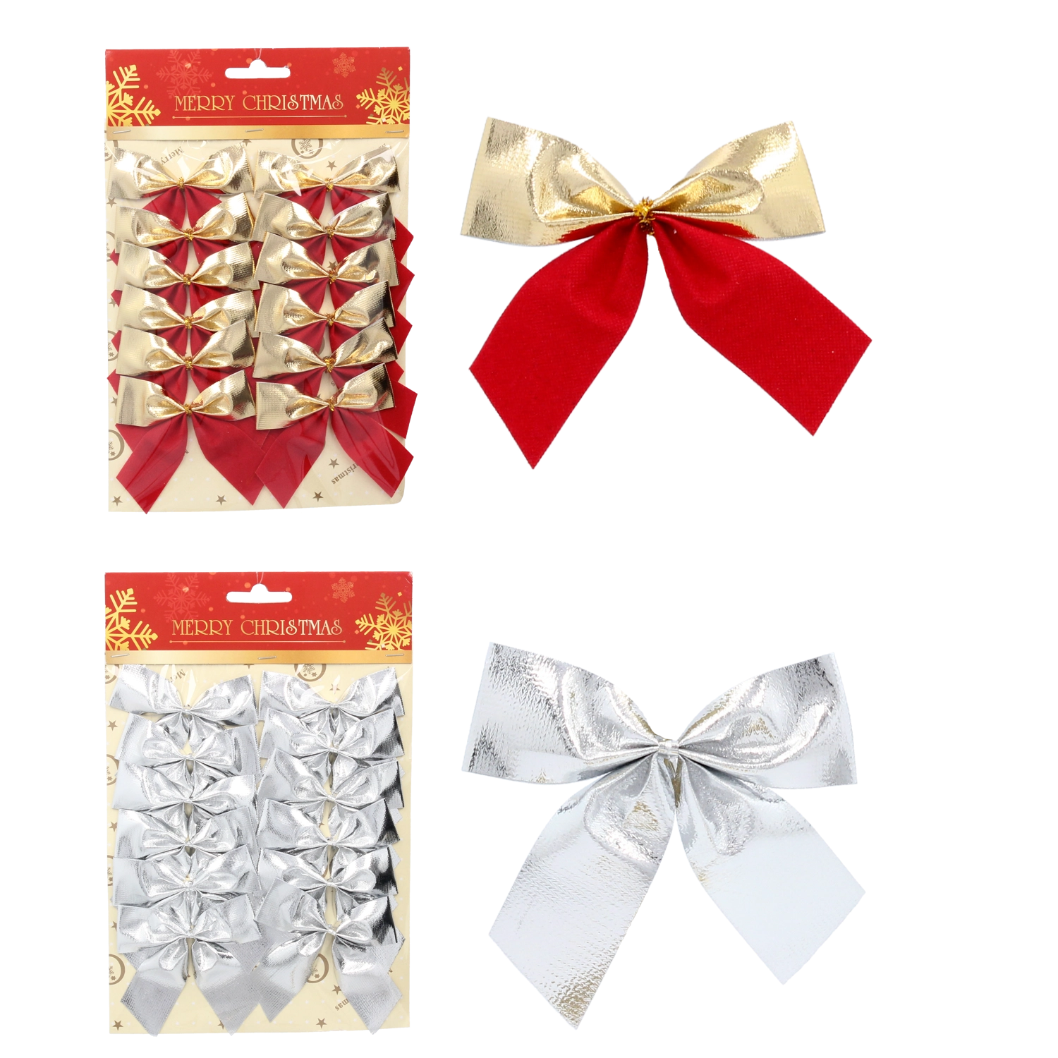 Ezüst, piros és arany karácsonyi masnik készlete – 12 db