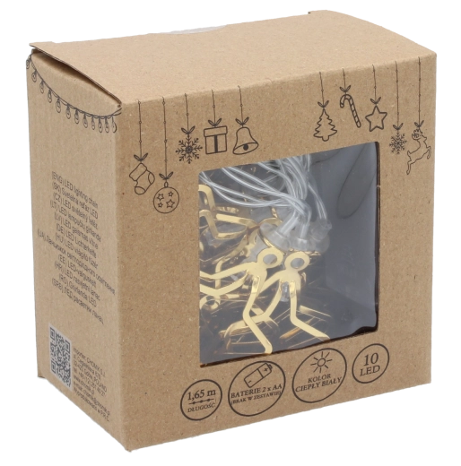 A füzér 2× AA elemmel működik (nem tartozék), így nem korlátozzák a konnektorok és a látható kábelek. A kompakt, 1,2 m-es hossz 10 cm-es LED-távolsággal polcokra, ablakokra, asztalokra és girlandokra is ideális.