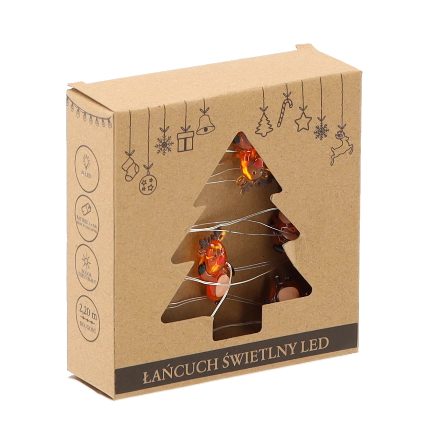 A praktikus 2,2 m hossz és a 10 cm-es LED távolság megkönnyíti a pontos elrendezést. Az őzike alakú dekoratív burák játékosságot visznek a térbe, és kellemes téli atmoszférát teremtenek.