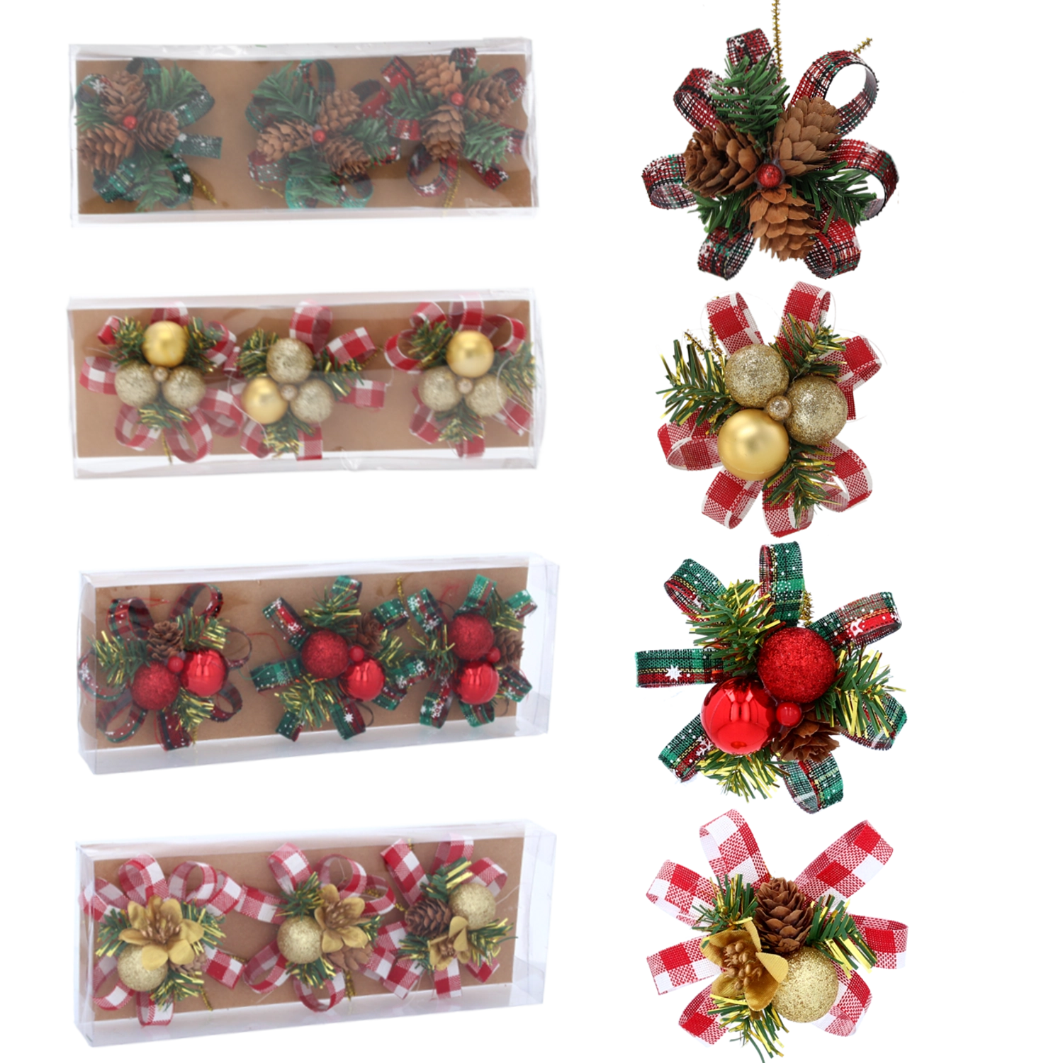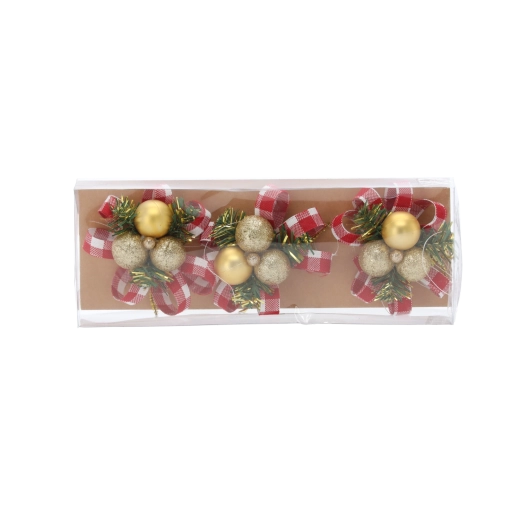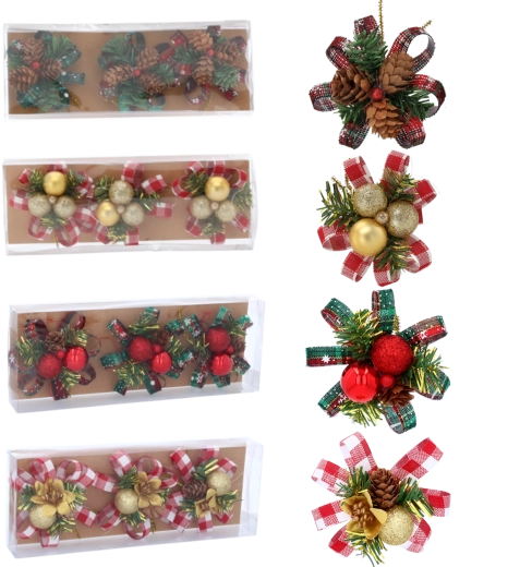 A díszek könnyűek és tartósak, hosszú élettartamú, minőségi műanyagból készültek. A drótból készült akasztófül megkönnyíti a felhelyezést a karácsonyfára, koszorúkra vagy ajándékcsomagokra. A minták és színek keveréke segít vizuálisan gazdag és stílusos díszítést létrehozni, amely első pillantásra megragadja a tekintetet.