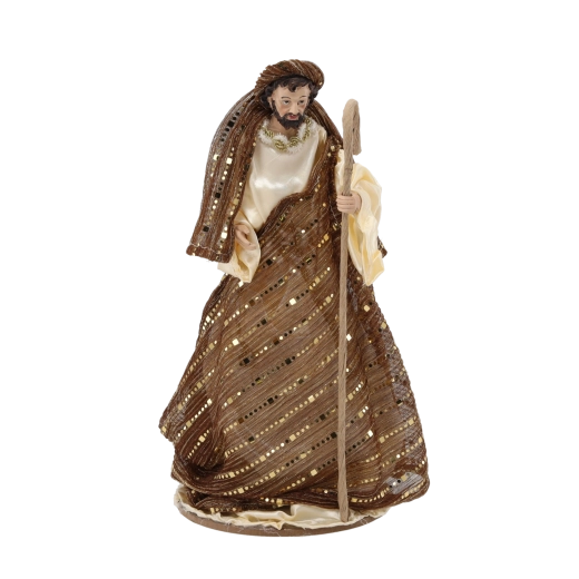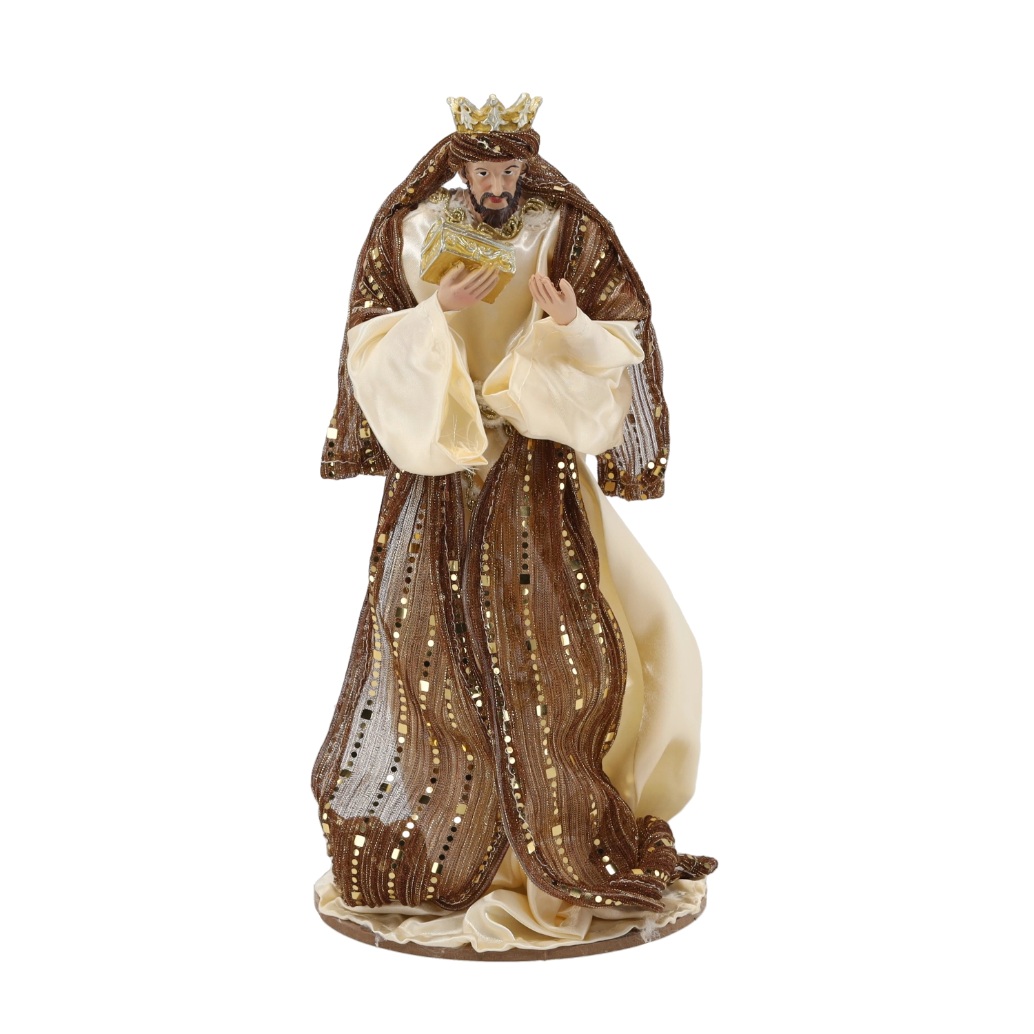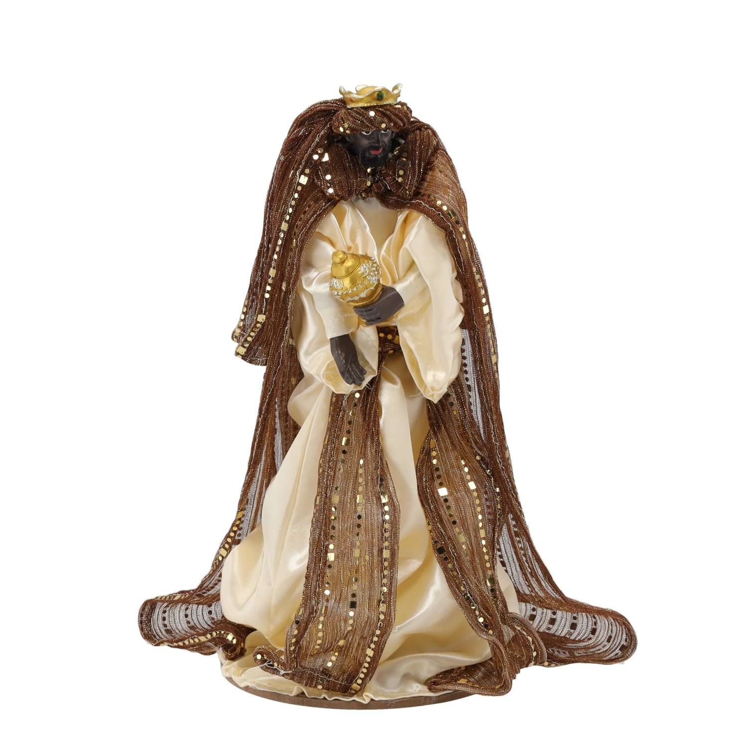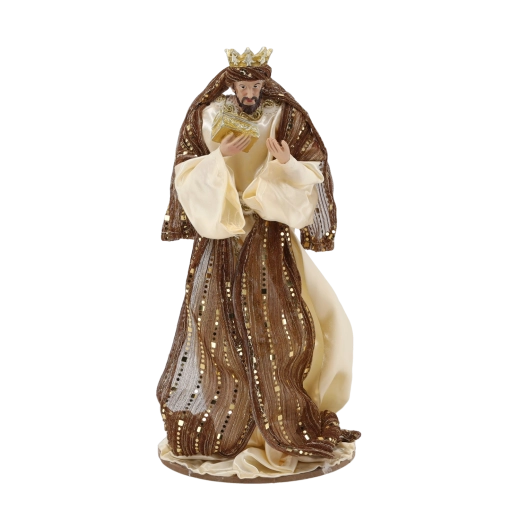 Élethű vonások, texturált ruházat és aranybarna tónusok biztosítják a figurák reprezentatív megjelenését, amely bármely enteriőrben kitűnik.