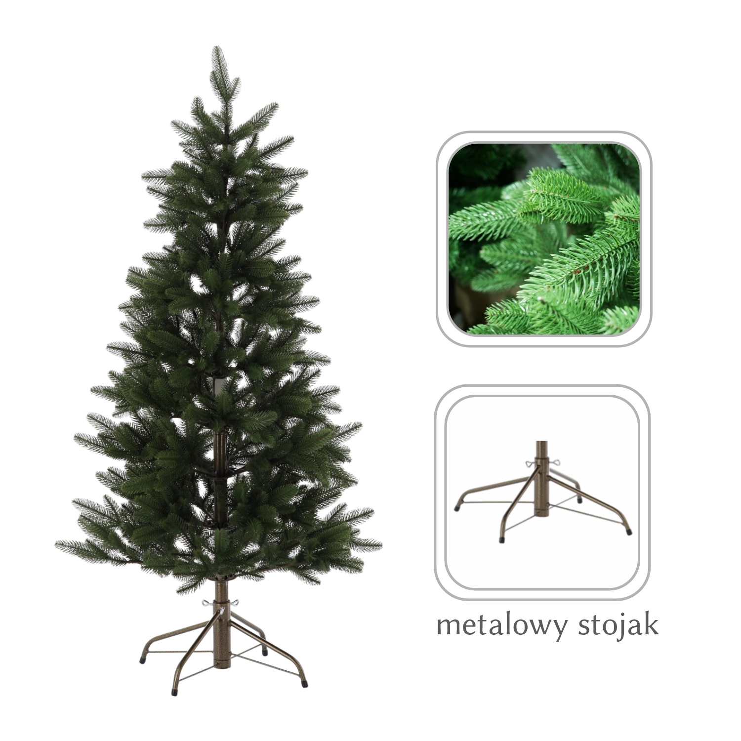 A masszív fém talp kiváló stabilitást és biztonságot nyújt. A fát pillanatok alatt össze- és szétszerelheti, ezért könnyen tárolható és készen áll a következő szezonokra. Tartós szerkezetének köszönhetően ideális gyermekes családoknak vagy háziállatok mellé – rendetlenség és az élő fákra jellemző karbantartás nélkül.