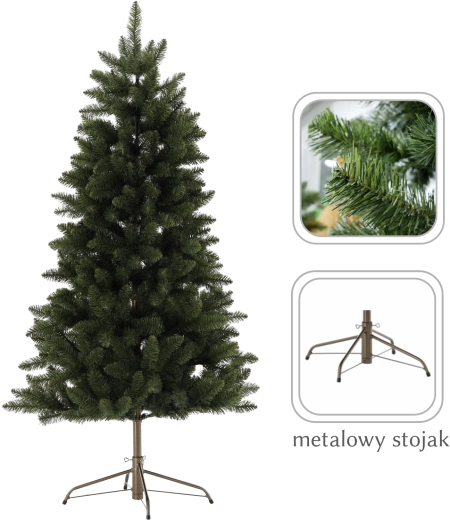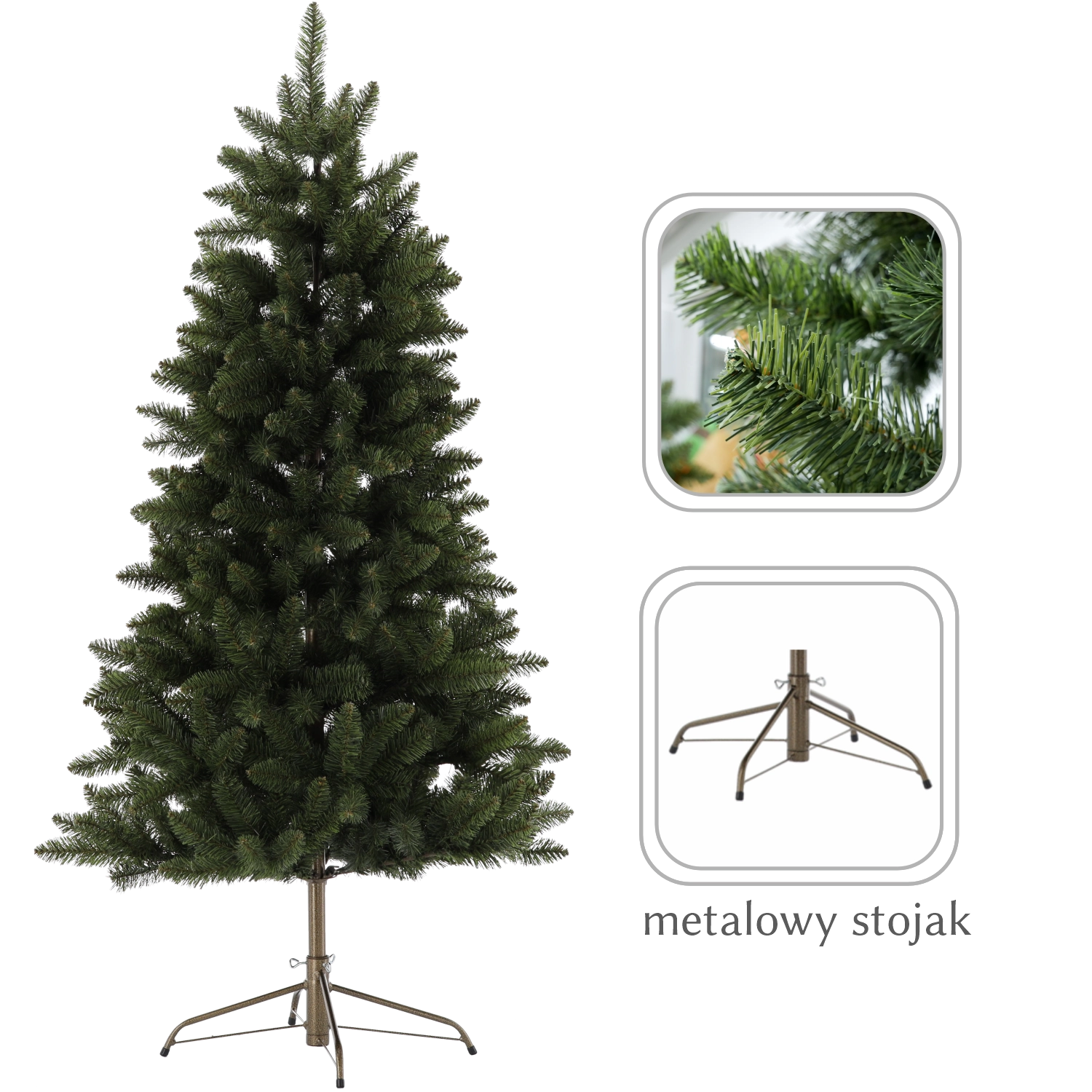 Élje át a karácsony varázsát a 180 cm magas, elegáns műfenyővel, amely hűen utánozza az élő fa megjelenését. A minőségi PVC anyagnak köszönhetően sűrű tűlevelekkel és mélyzöld árnyalattal rendelkezik a természetes és esztétikus hatásért.