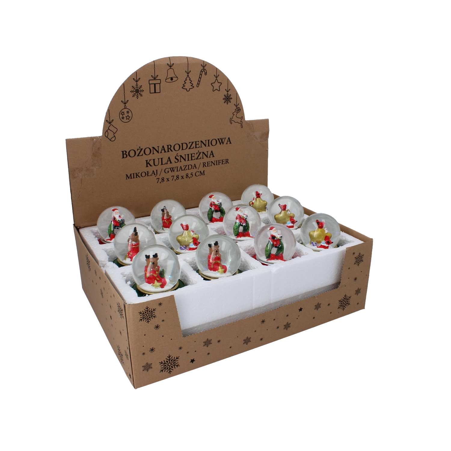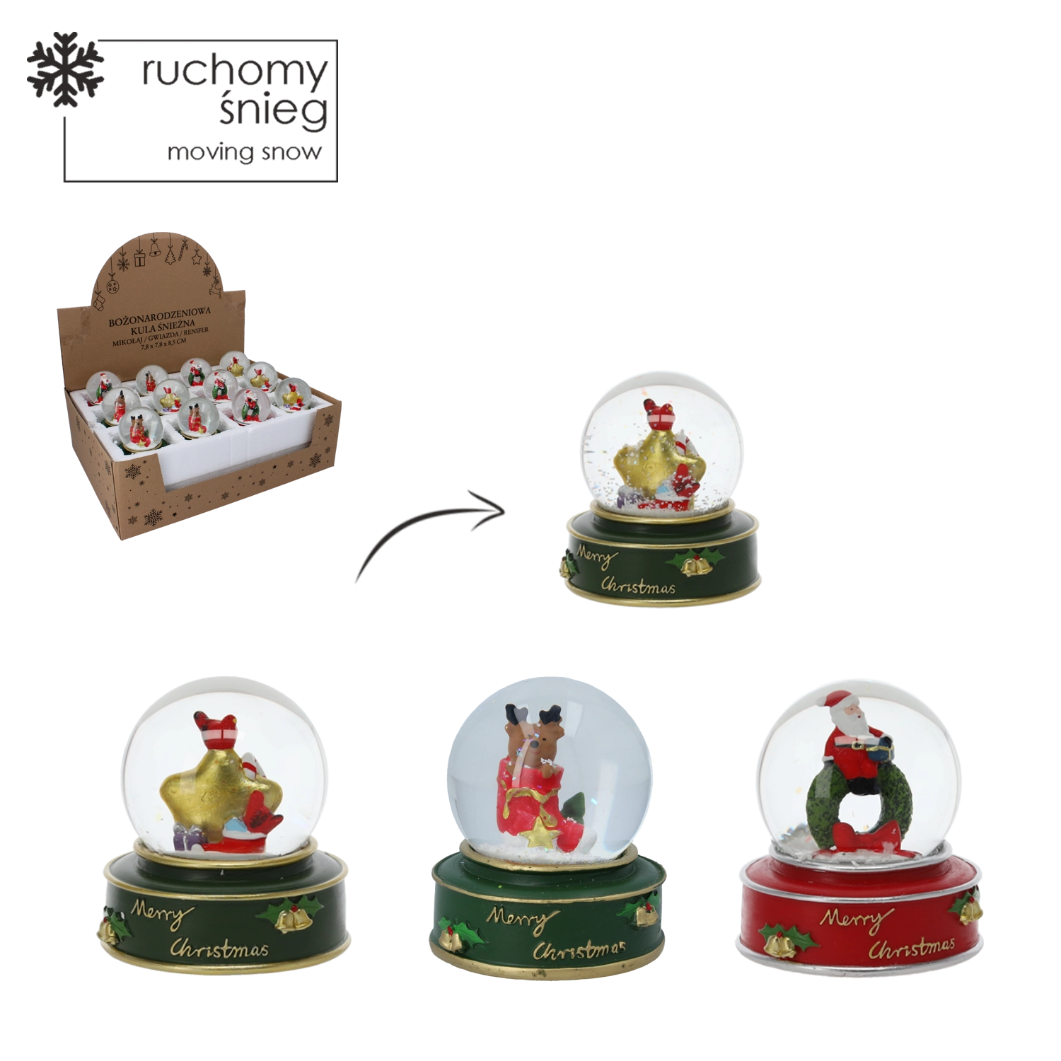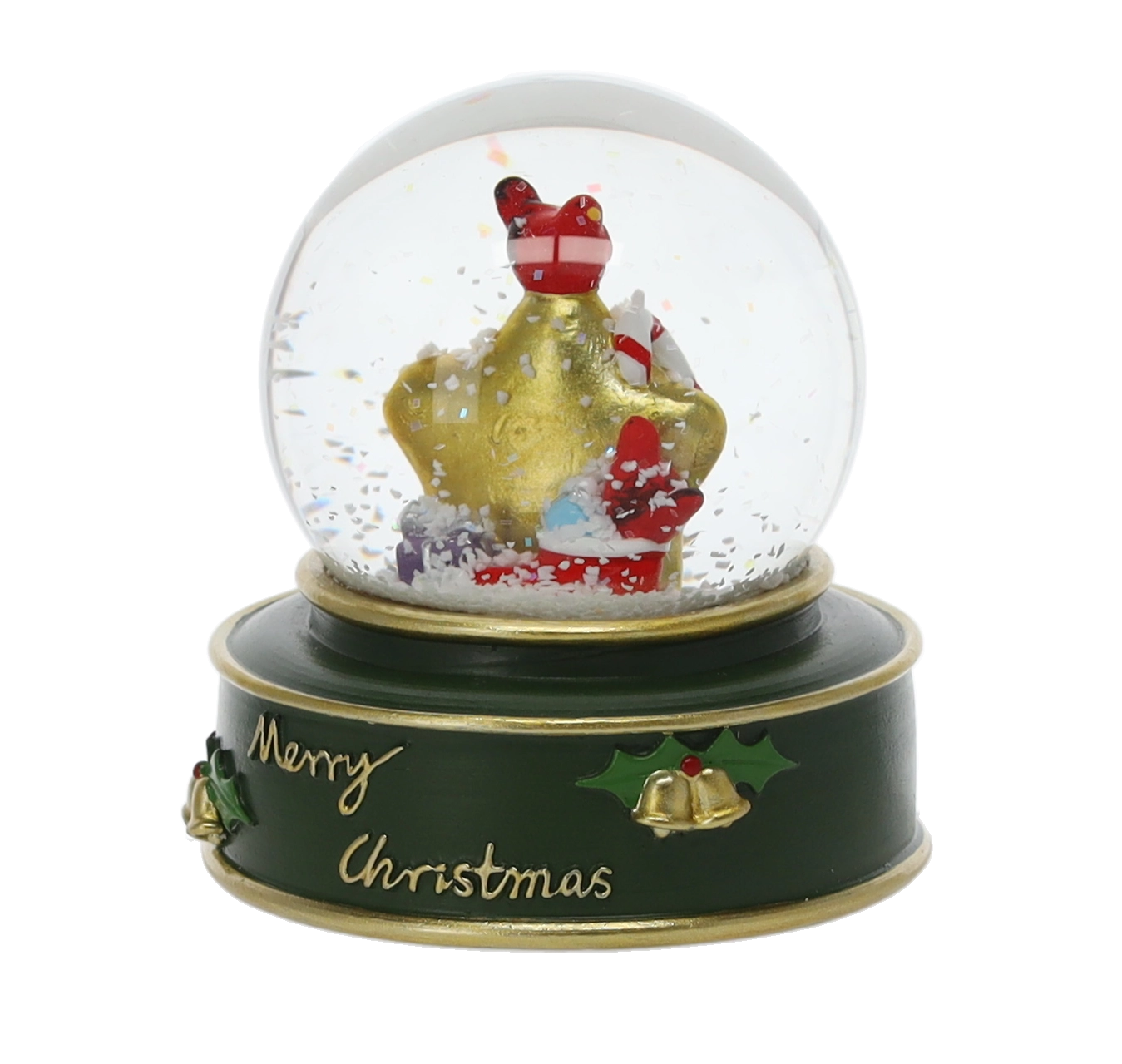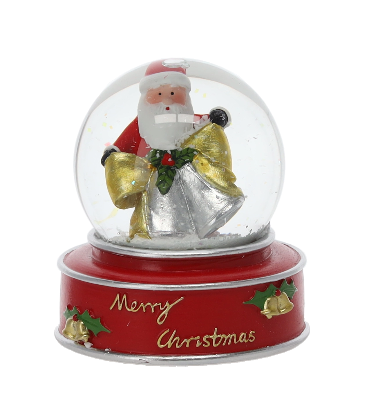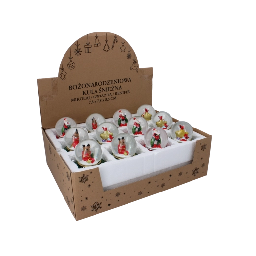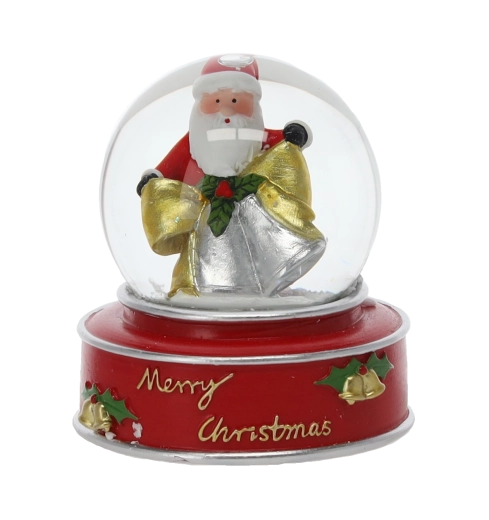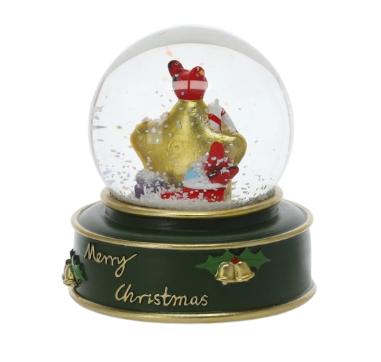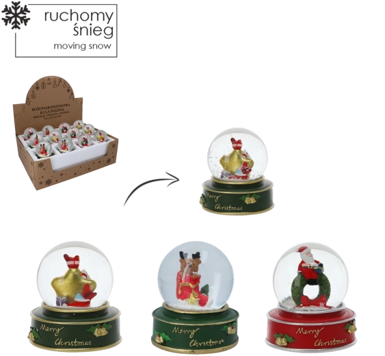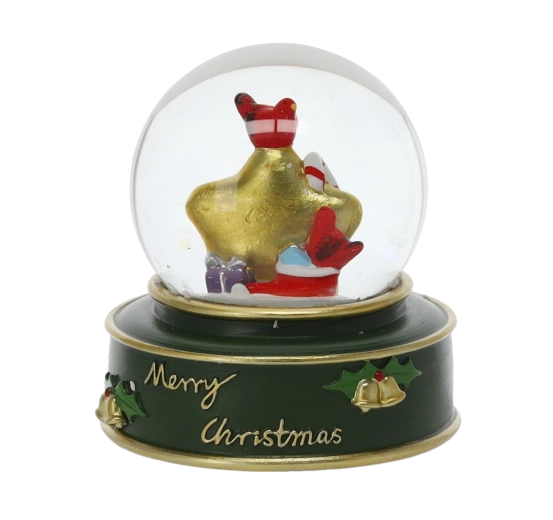 Stílusos karácsonyi hógömb üvegkupolával és színes, masszív talppal, „Merry Christmas” felirattal, amely azonnali ünnepi hangulatot kölcsönöz otthonának. Megrázás után havazás effektus kel életre, kiemelve a részletgazdag Mikulás-, csillag- vagy rénszarvas-figurákat.