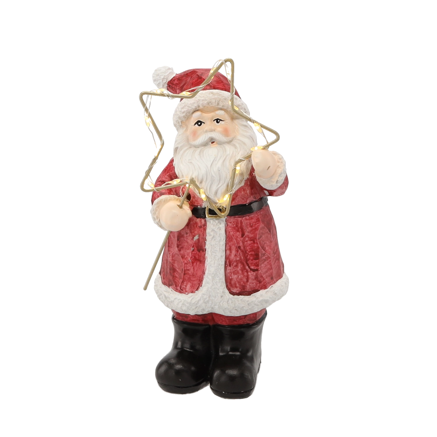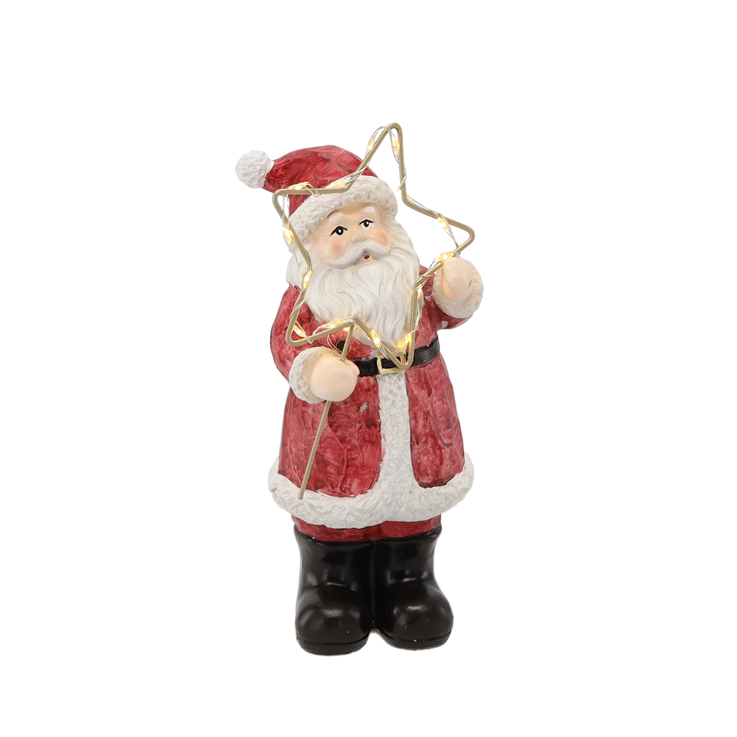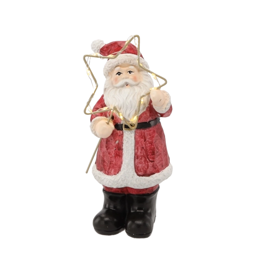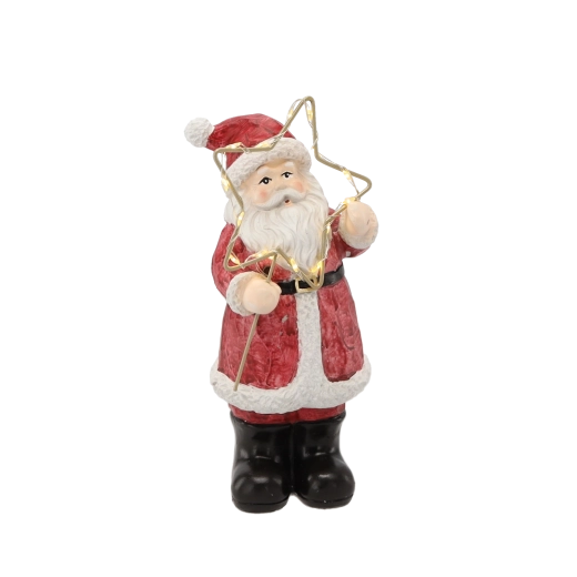 Karácsonyi figura – álló Mikulás csillaggal, LED, 23 cm