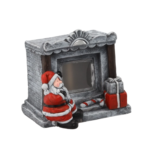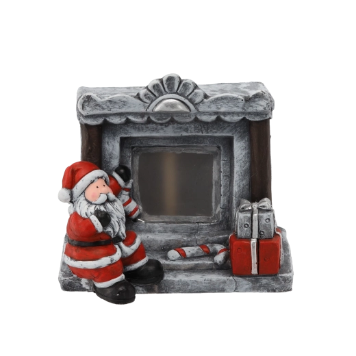 Ez a kő kandalló formájú, Mikulást ábrázoló dekorfigura meleg, ünnepi hangulatot visz a belső térbe. A beépített LED fény finoman átvilágítja a „tüzet”, barátságos, meleg fényt adva polcra, konzolasztalra vagy karácsonyi asztalra.