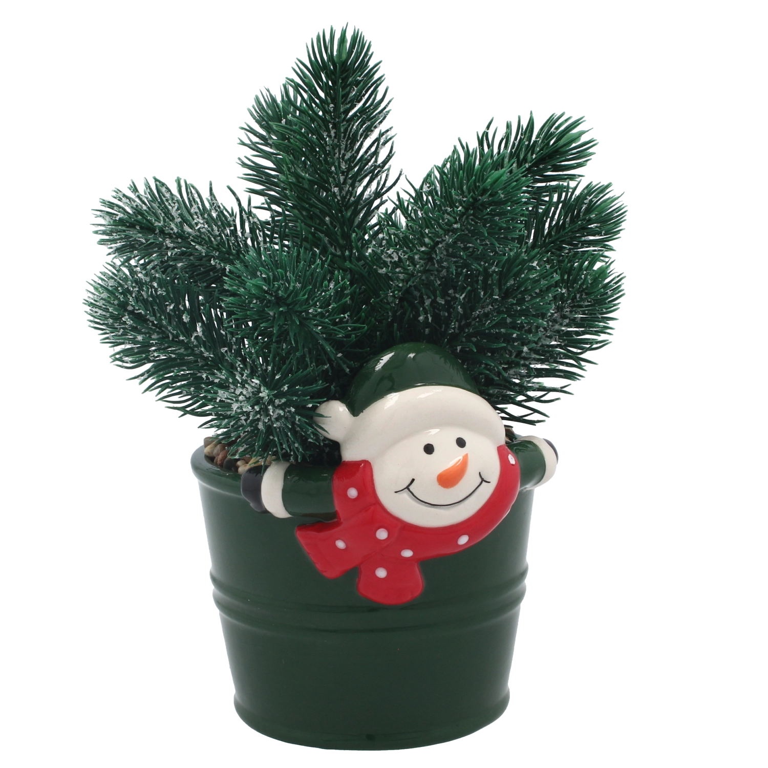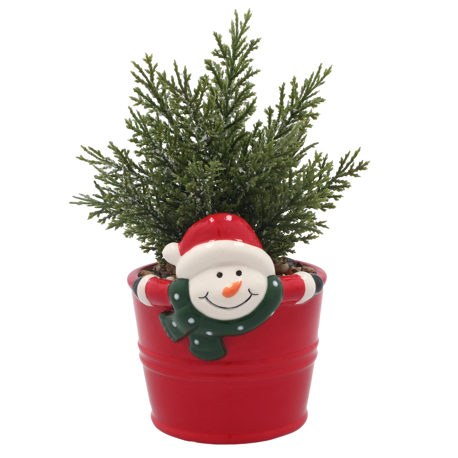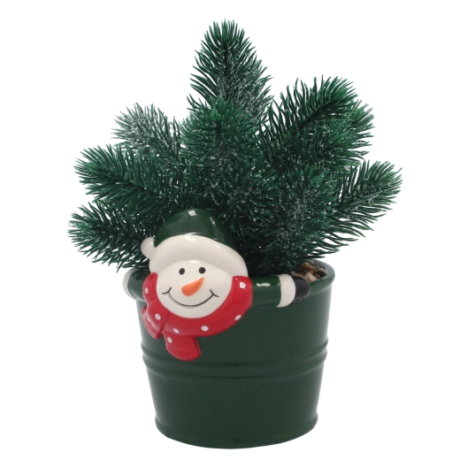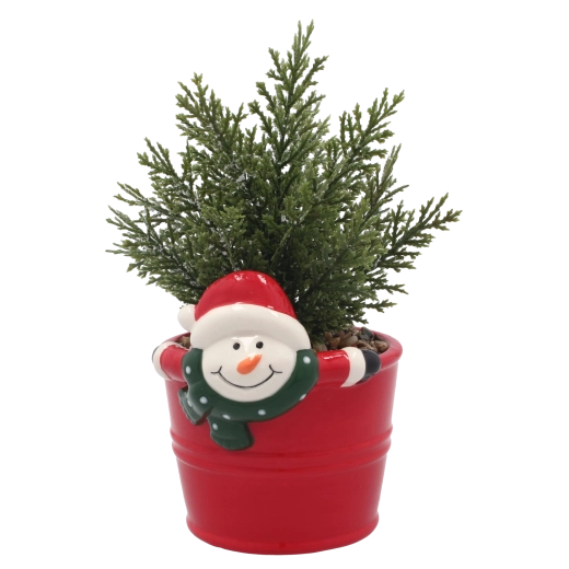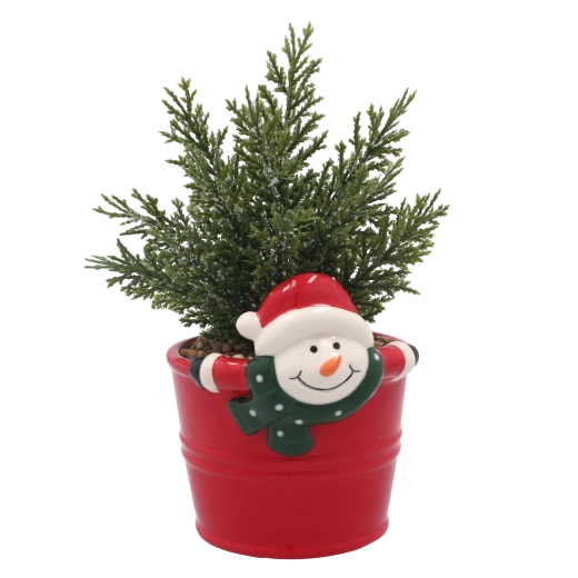 A dekoratív kerámia kaspó vidám hóember mintával játékos akcentust ad bármely térnek, és stabil elhelyezést biztosít.
