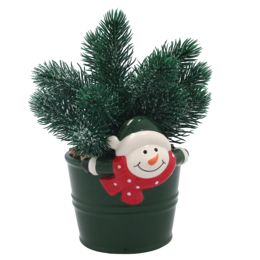 Stílusos mesterséges növény minőségi kerámia kaspóban, amely egész évben frissességet és természetes hangulatot visz a belső terekbe. A gondosan kidolgozott tűleveleknek és a vidám téli motívumú dekoratív kaspónak köszönhetően élethű hatást kelt, és azonnal ünnepi hangulatot teremt az asztalon, a polcon vagy akár az íróasztalon.