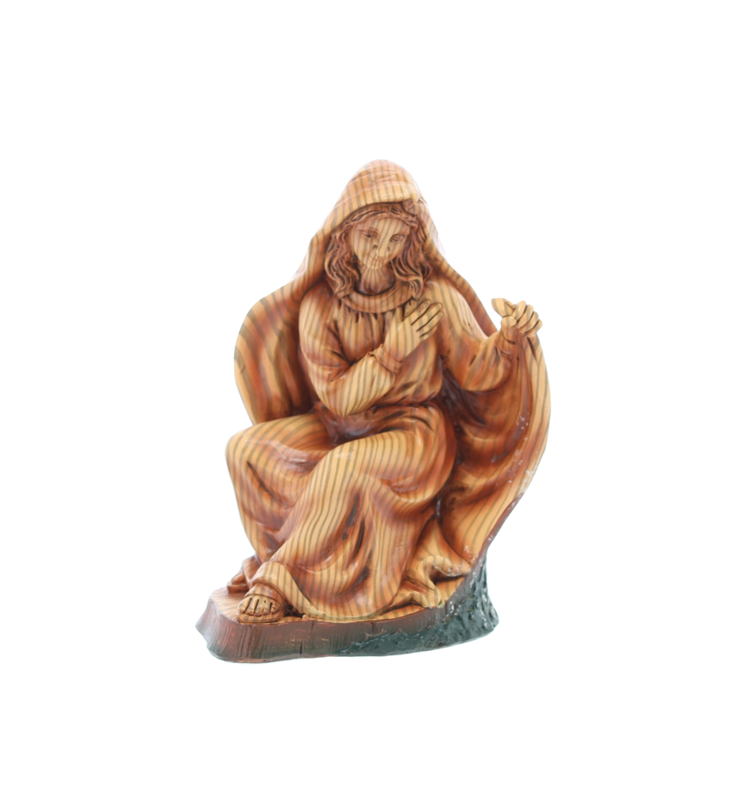 Minden figura gondosan kézzel festett, finom átmenetekkel és textúrákkal, amelyek kiemelik az arcvonásokat, a drapériák redőit és az állatok természetes megjelenését.