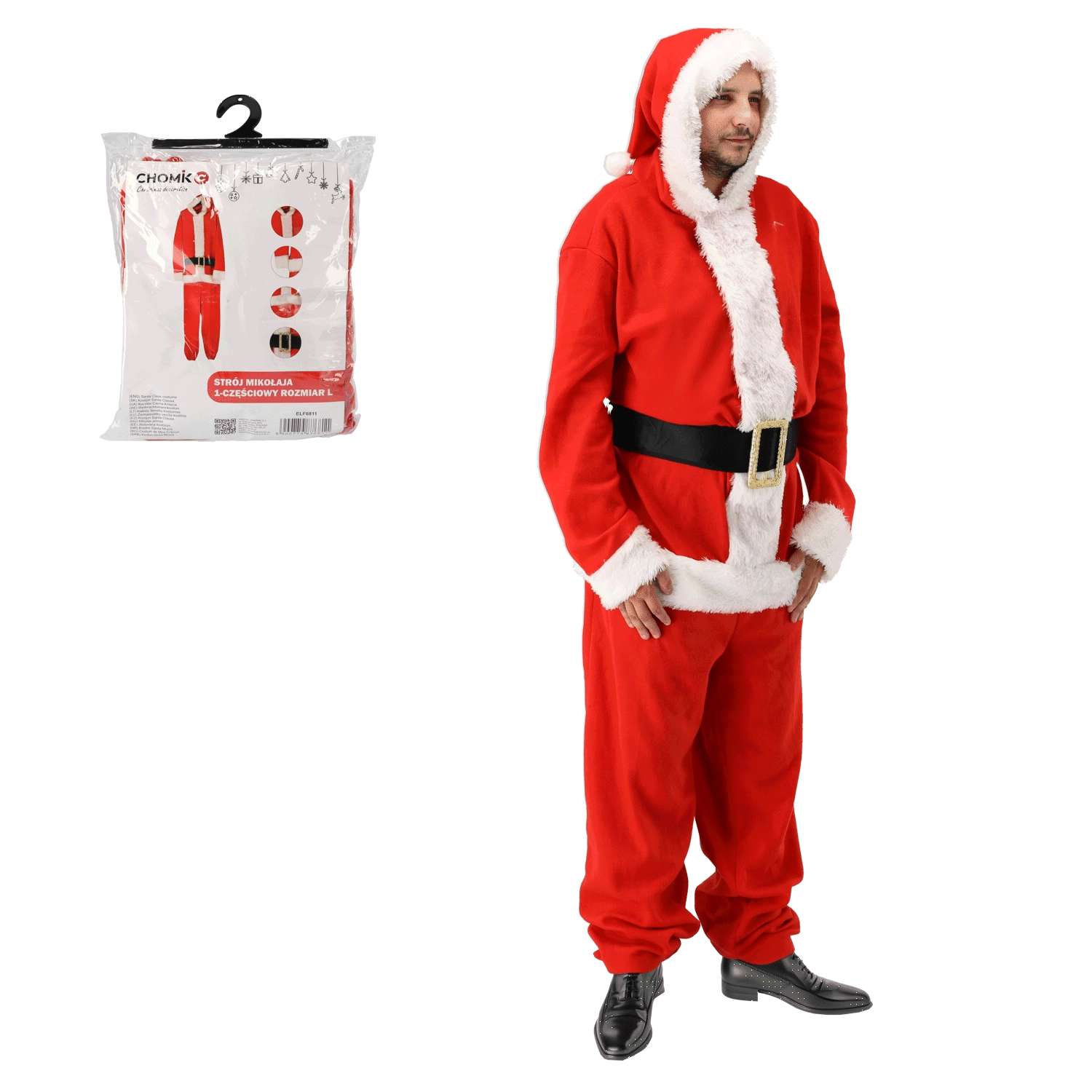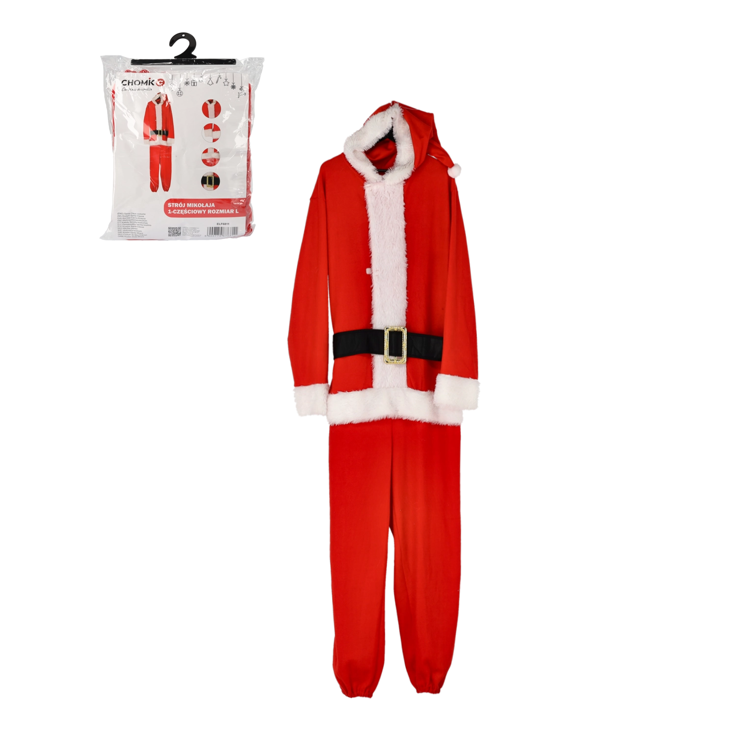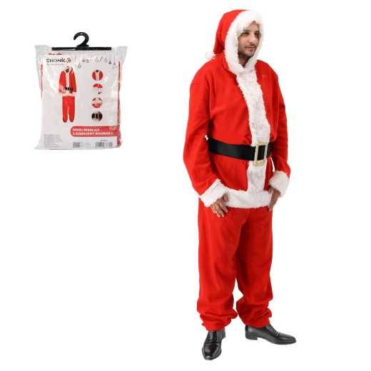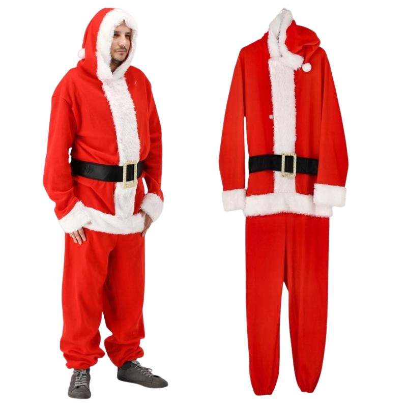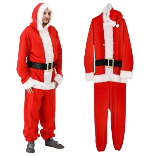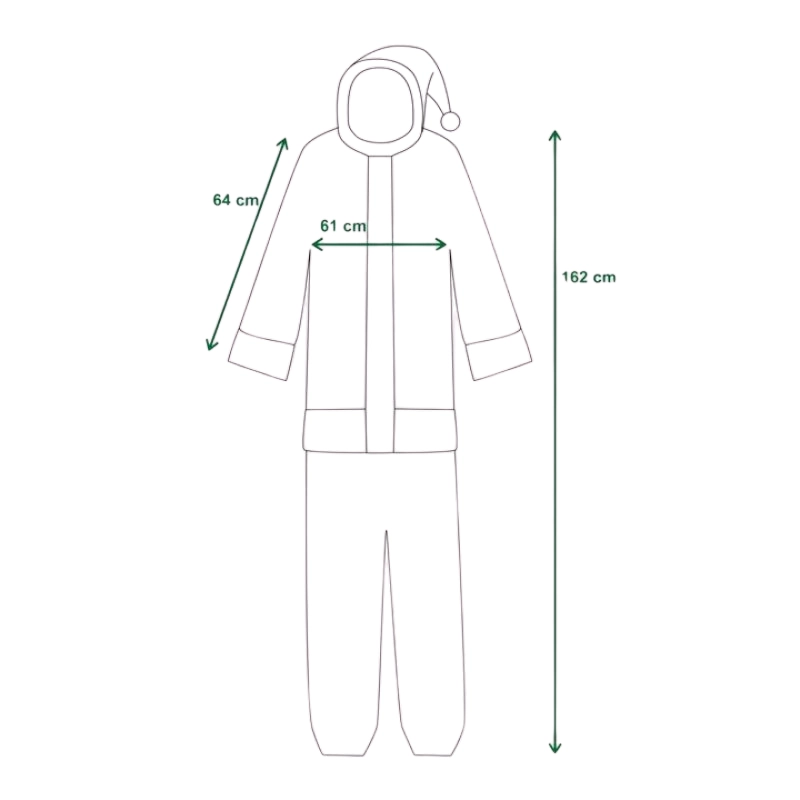 Stílusos és praktikus Mikulás jelmez, amelyet pillanatok alatt felvehet. Az egyrészes szabásnak köszönhetően remekül hordható, nem szorít, és maximális mozgásszabadságot nyújt. A piros kivitel fehér, bolyhos szegéllyel és dekoratív övvel minden eseményen autentikus karácsonyi megjelenést biztosít.