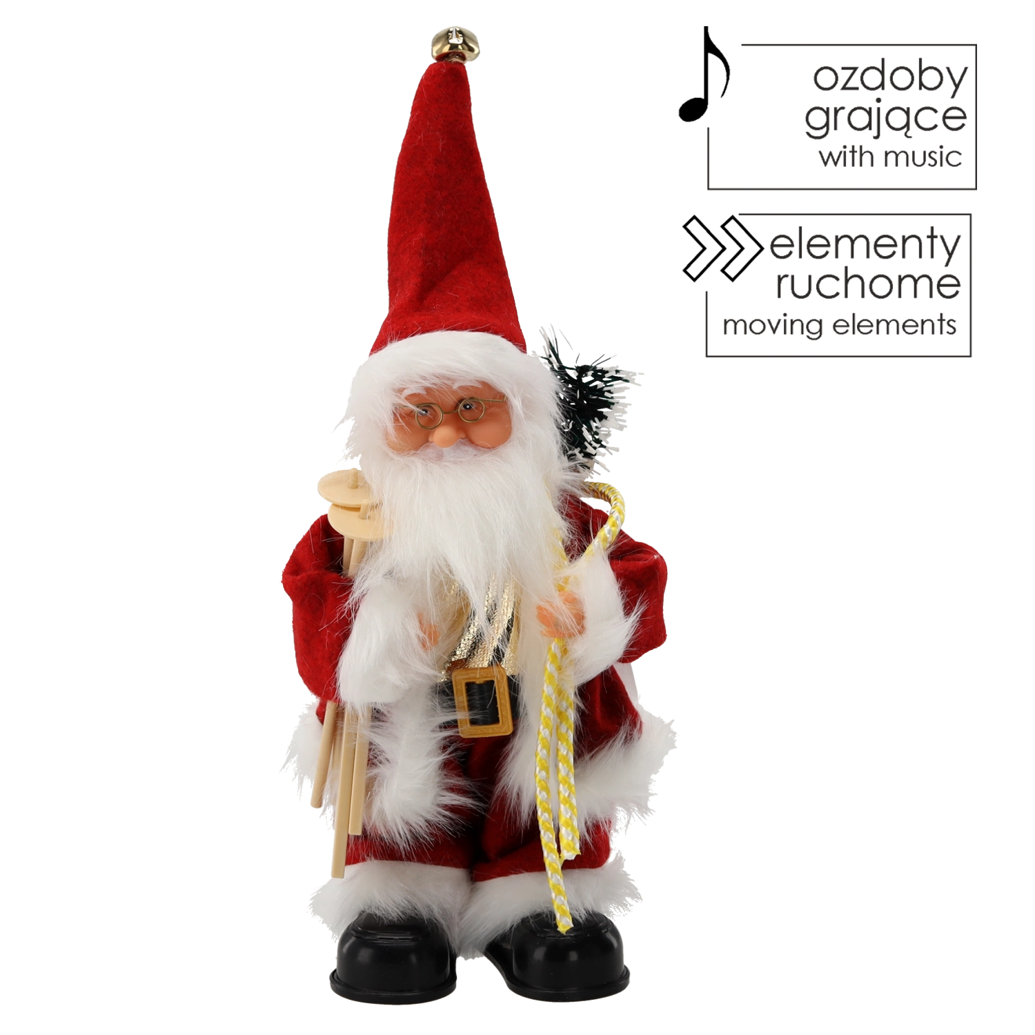 Játszó Mikulás figura sílécekkel, 30,5 cm