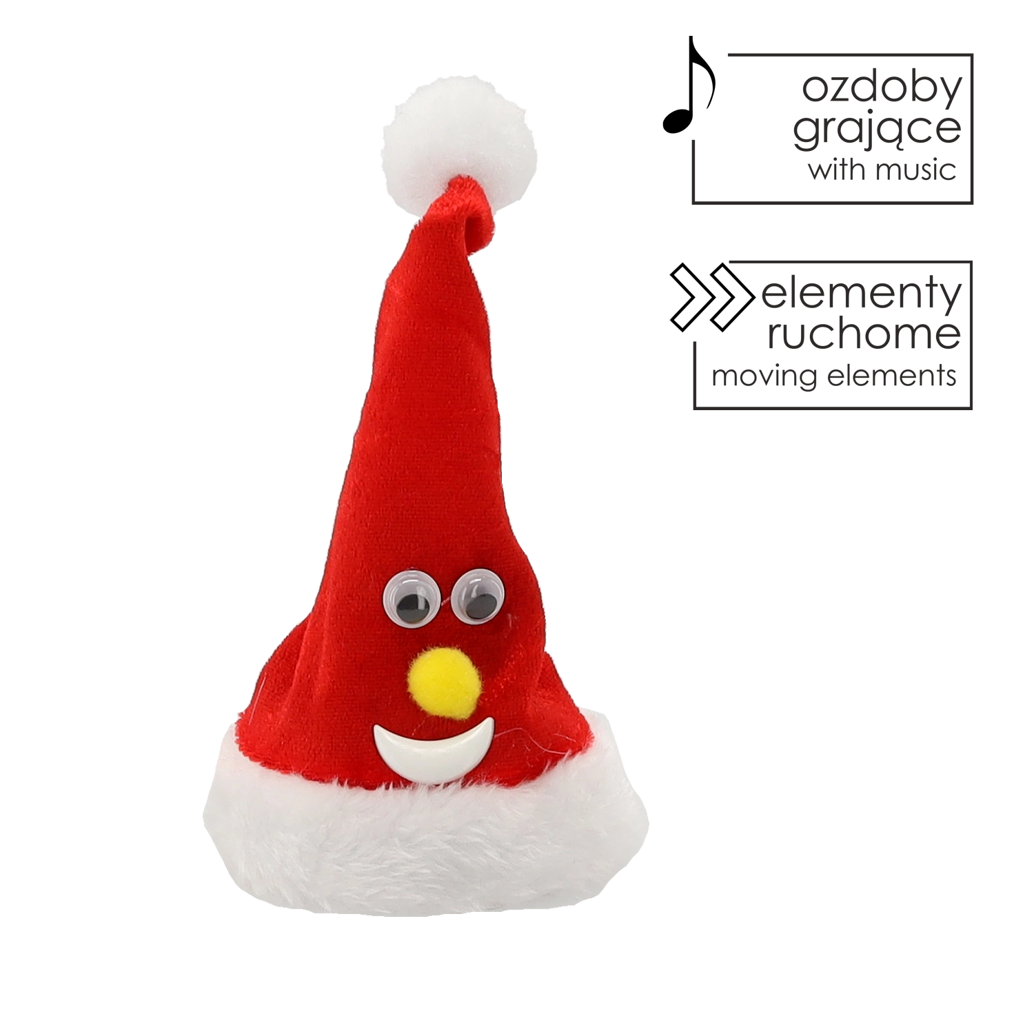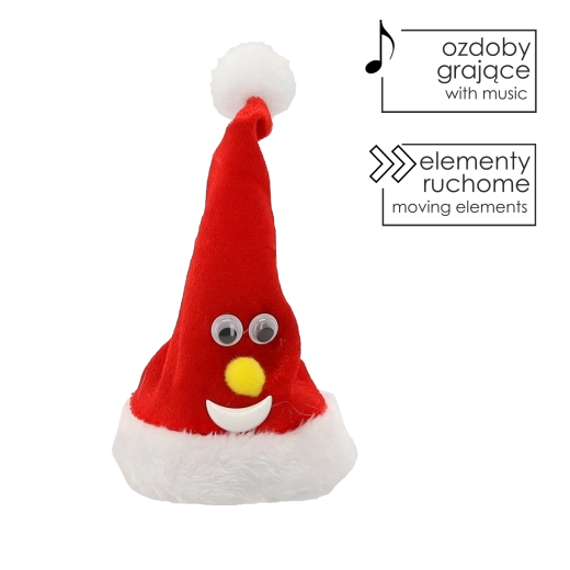 Varázsoljon ünnepi hangulatot ezzel a mozgó karácsonyi Mikulás sapkával, 13 cm-es magasságban, amely bekapcsolás után táncol és vidám hangokat ad ki. A elemes tápellátásnak köszönhetően kábelek nélkül bárhová elhelyezhető – asztalra, polcra vagy a karácsonyfa alá. A kellemes tapintású anyag és a kompakt méret ideális dekorációvá teszi a varázslatos karácsonyi hangulat megteremtéséhez.