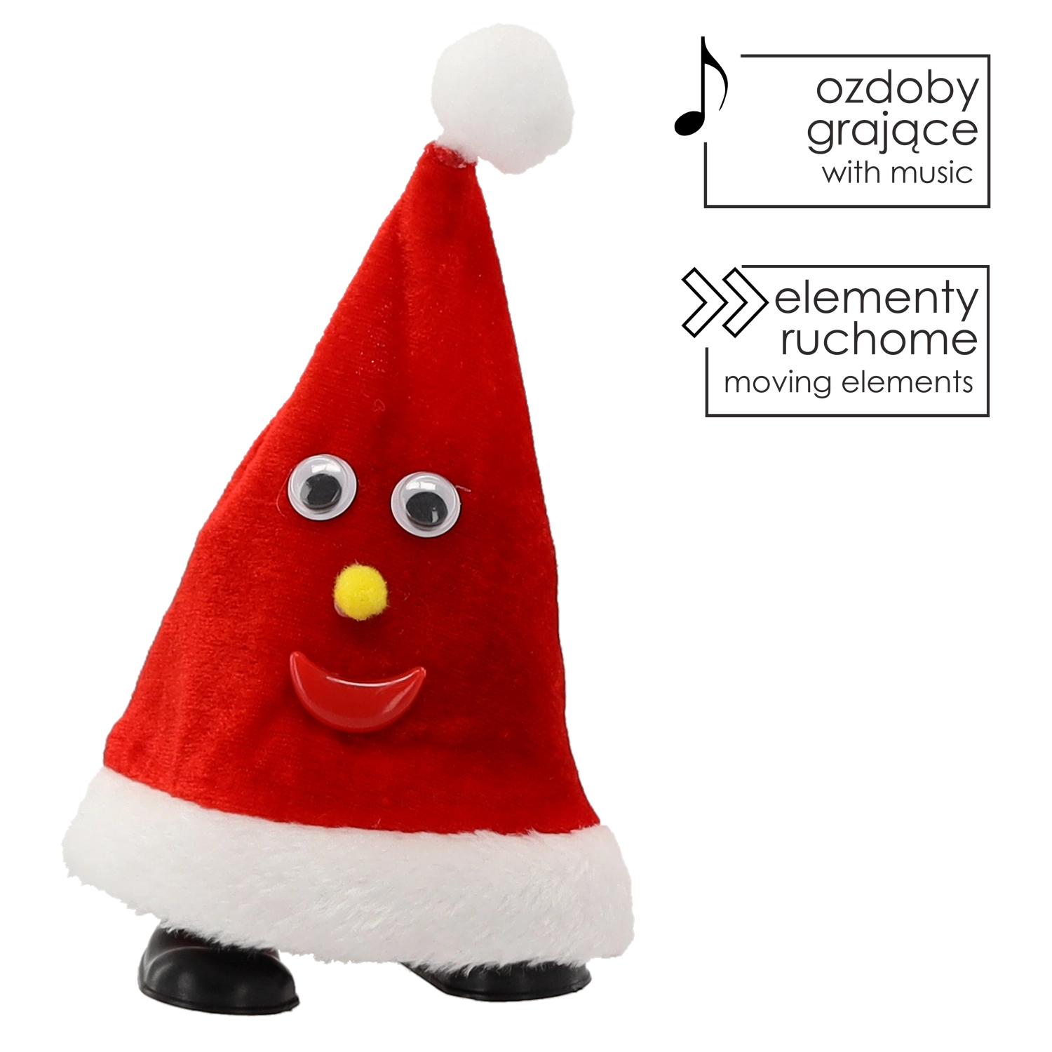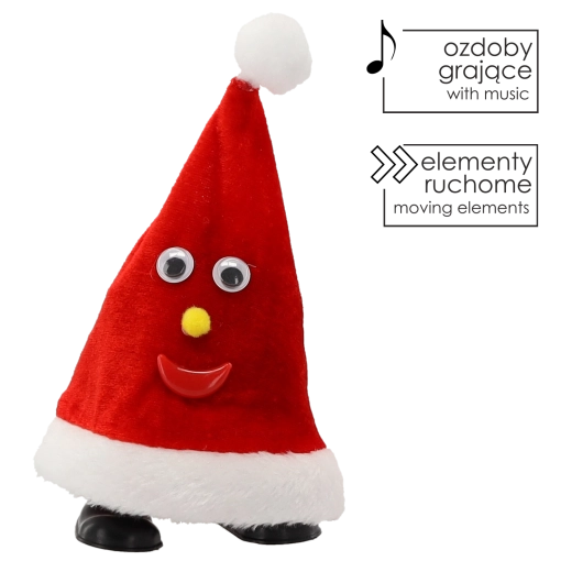 Vigyél még több örömöt az ünnepekbe az interaktív Mikulás sapkával, amely bekapcsolás után bájosan mozog és vidám dallamokat játszik. Feltűnő dizájnja mozgó szemekkel, sárga orral és mosollyal kihagyhatatlan eleme lesz a karácsonyi dekorációnak a nappaliban, gyerekszobában vagy az irodában.