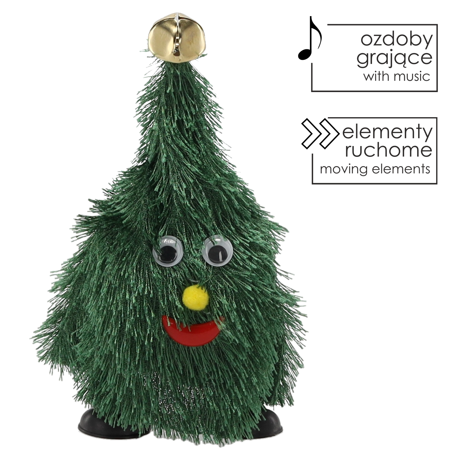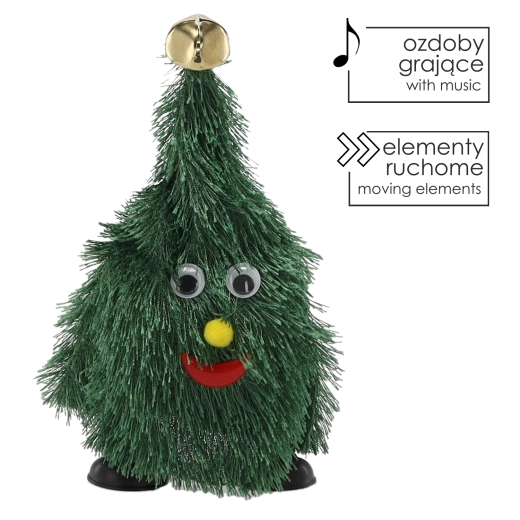 Dobja fel az ünnepi hangulatot ezzel a éneklő és táncoló karácsonyfával, 20,5 cm magas kivitelben. Bekapcsolás után dinamikusan mozog és vidám dallamokat játszik, így örömet szerez gyermekeknek és felnőtteknek egyaránt. A kompakt méreteknek és a elemes tápellátásnak köszönhetően bárhová könnyedén elhelyezhető, konnektor nélkül is.