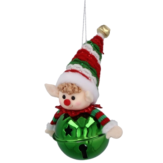 Ez a függő dísz, amely egy fényes csengőn ülő manó alakját formázza, igazi karácsonyi varázst visz az otthonodba. A 12 × 5 cm-es méret jól érvényesül a fán, girlandon vagy koszorún, és finom csilingelésével ünnepi hangulatot teremt.