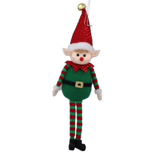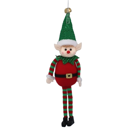 A szabadon lógó lábakkal készült dizájn játékos mozgást és egyediséget kölcsönöz a dísznek. Az anyag kellemes tapintású és biztonságos a gyermekes otthonok számára. Kiválóan mutat a karácsonyfán, az ablakokban, az ajtón, illetve az ünnepi asztal részeként is.