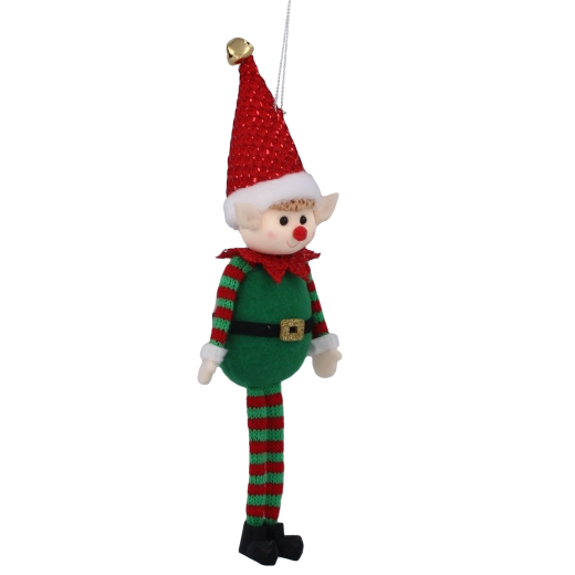 A puha filcből készült, csillogó részletekkel díszített, bájos karácsonyi manó otthonának ünnepi varázst kölcsönöz. A lógó lábak játékos és eredeti megjelenést adnak, harmonikusan illeszkedik a piros–zöld színösszeállításhoz, és könnyen felakasztható a fára vagy az ablakba. A textil kivitel könnyű, biztonságos és tartós – ideális gyermekes családok számára.