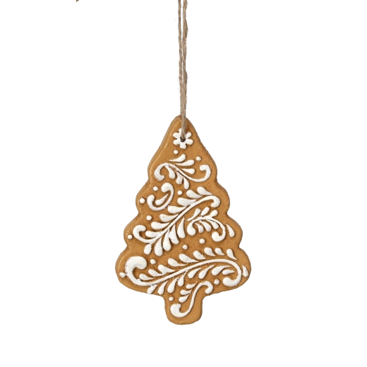 - Autentikus mézeskalács megjelenés: barna tónusok fehér díszítéssel, meleg és hagyományos hatás.