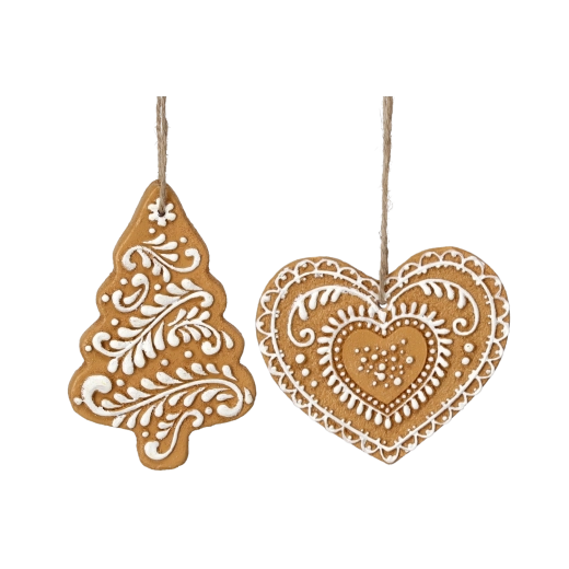 A mézeskalács formájú díszek a kézműves jellegű megjelenést a modern anyagok praktikumával ötvözik. Alacsony tömegüknek köszönhetően könnyen felakaszthatók, és szépen érvényesülnek a fenyőágakon, koszorúkon és az egész lakás ünnepi dekorációiban.