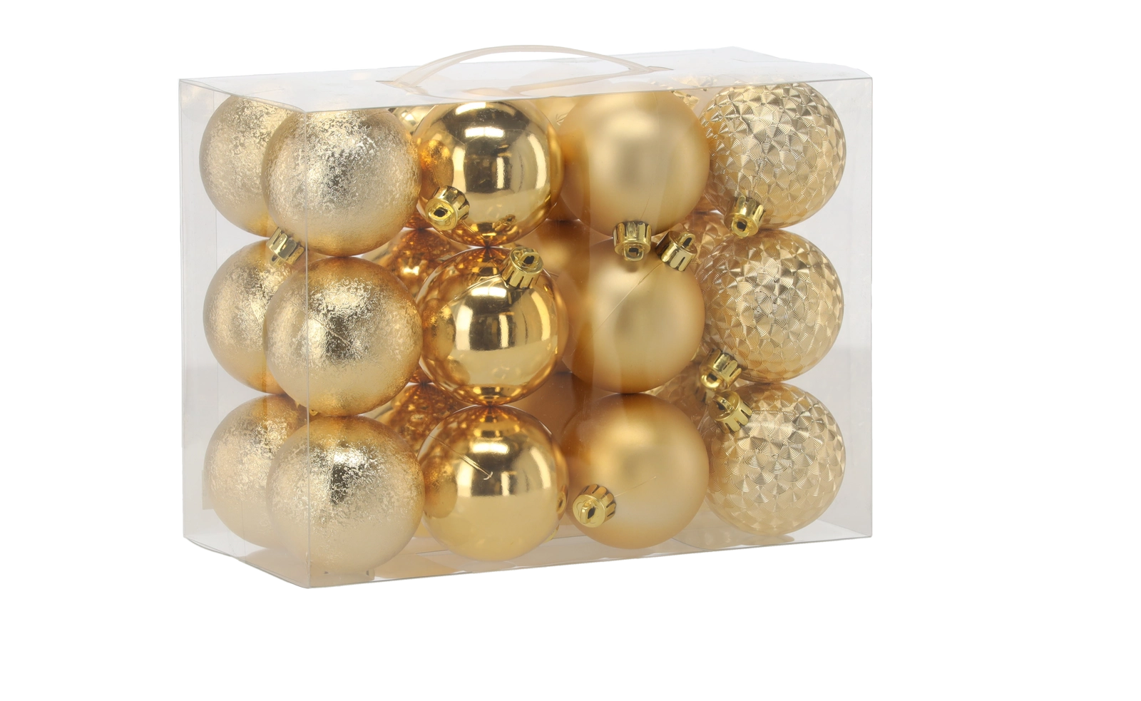 Teremtsen tökéletes ünnepi hangulatot ezzel az univerzális karácsonyi gömbkészlettel, amely a hagyományos színeket különböző felületekkel és mintákkal ötvözi – fényes, matt, csillámos és texturált kivitel. Minden dísz fém sapkával, szemmel és finom zsinórral rendelkezik a gyors felakasztáshoz.