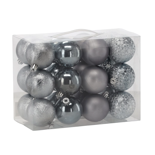 A tartós műanyag révén a díszek könnyűek, biztonságosak és kevésbé hajlamosak a sérülésre. A felületkezelések keveréke csillogást, visszafogott matt hatást, látványos csillámot és fazonírozott fényt biztosít, így könnyedén érhetsz el professzionális eredményt.