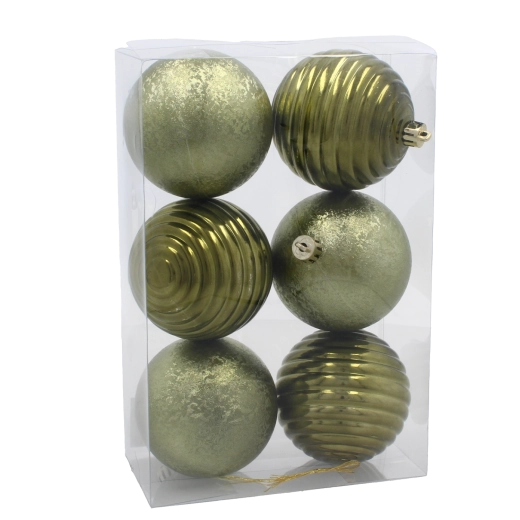 Vigyen otthonába eleganciát és modern stílust ezzel a hatdarabos, 8 cm átmérőjű karácsonyi gömbszettel, olívazöld, réz és grafit kombinációban. A tartós műanyag anyag biztonságos kezelhetőséget, alacsony súlyt és hosszú élettartamot biztosít, így kifinomult és harmonikus díszítést hozhat létre gondtalanul.